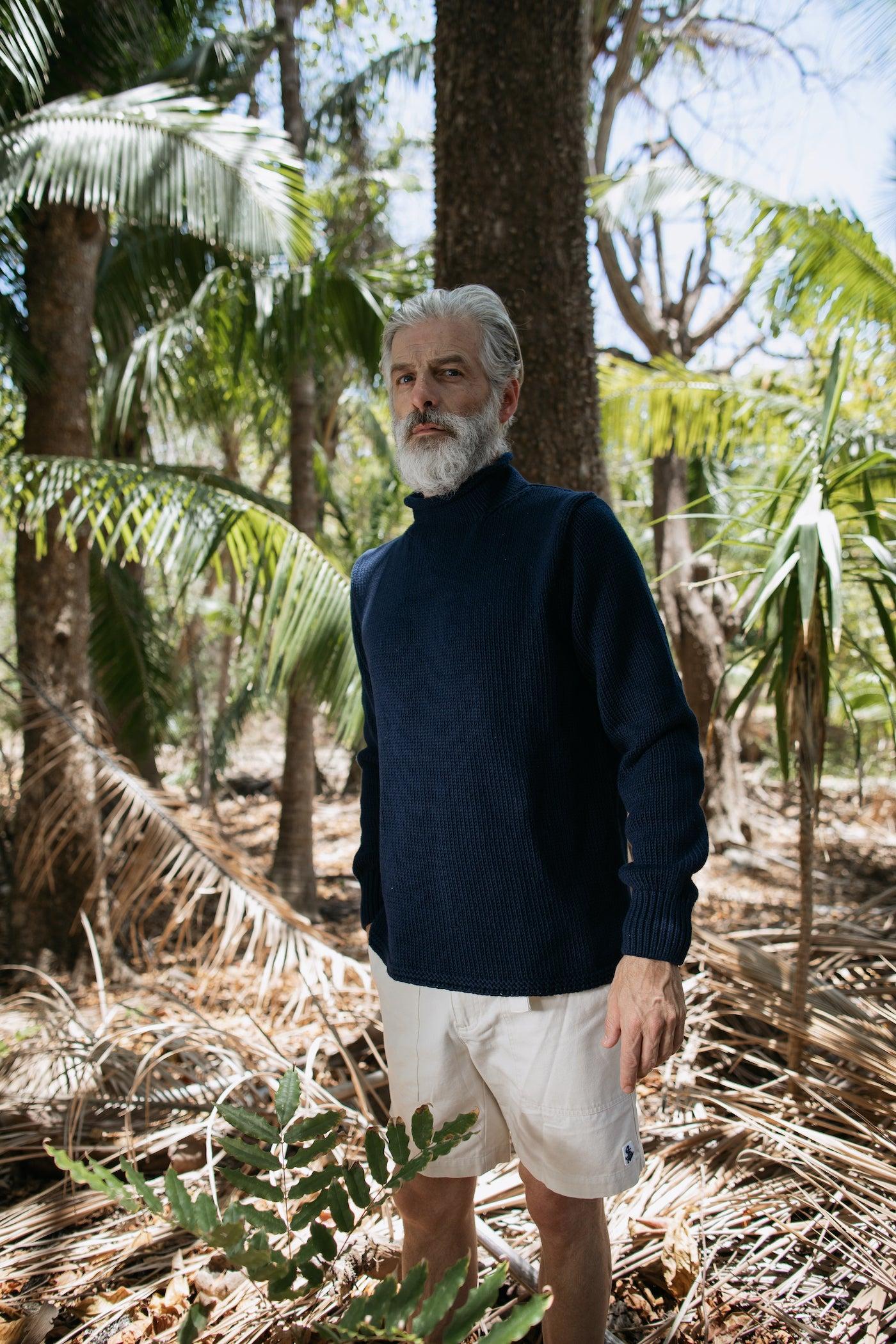 Time honored and sea-tested. We built the perfect fisherman's sweater, inspired by the traditional rollneck that has been a maritime classic for generations. When the salt water is spraying over the bow and the trade winds are gusting, you'll be glad you reached for the Fisherman's Sweater. Made in breathable cotton so you can still enjoy the afternoon sun.