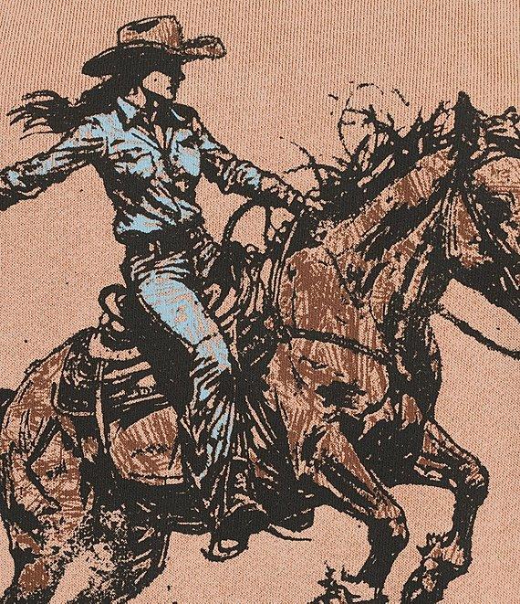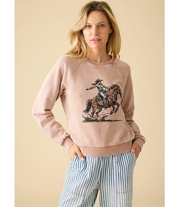 From Flag and Anthem, this sweatshirt features: Contrasting ribbed knit neckline, cuffs and hem Long sleeves Dropped shoulders Rodeo cowgirl “riding” a “bucking” horse original Flag and Anthem artwork on the front Pullover styling Cotton/polyester comfy knit Machine wash/tumble dry Imported.