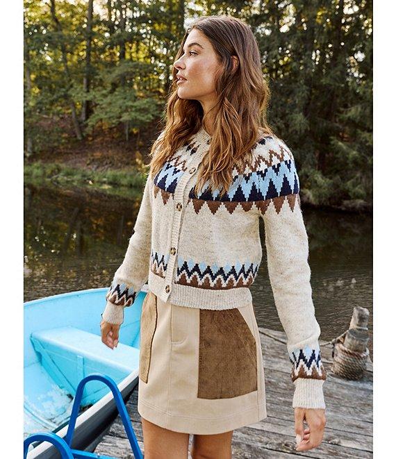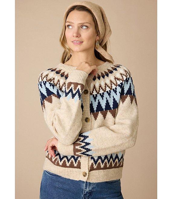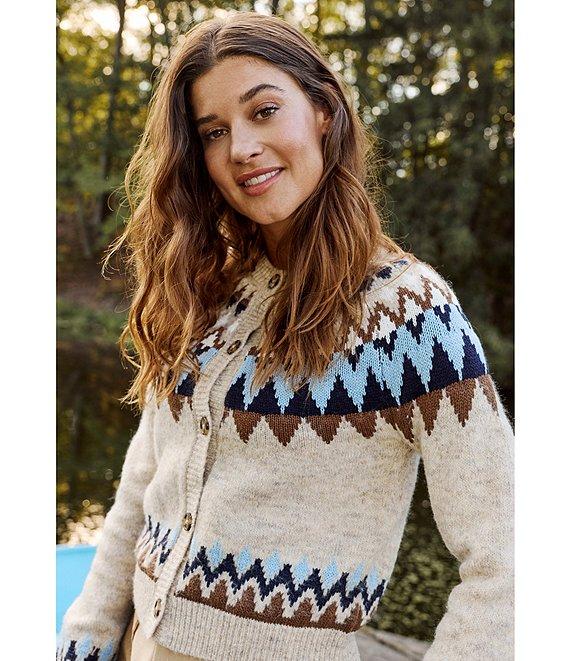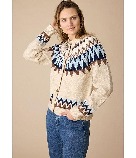 From Flag and Anthem, this cardigan features: Medium-gauge, brushed-knit fabric Fair isle pattern Round neckline Long sleeves Button-front closure Ribbed-knit accents at the neckline, cuffs and hem Medium-gauge, brushed-knit fabric of cotton/wool/spandex Machine wash/tumble dry Imported.