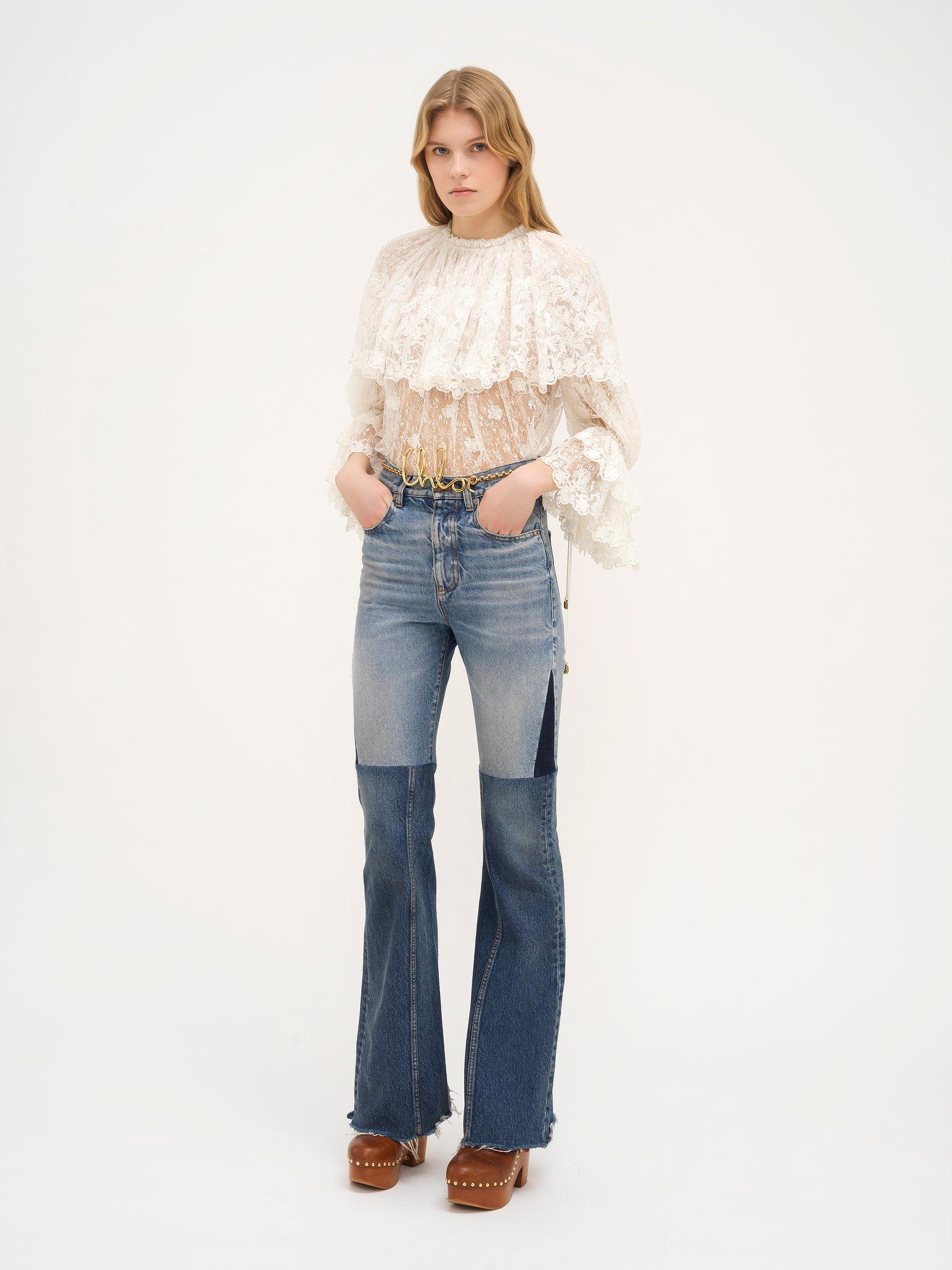 Flared patchwork jeans in denim