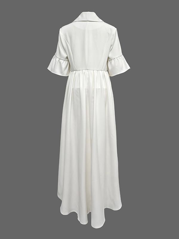Flared Sleeves Half Sleeves Ruffle Trim Solid Color Deep V-Neck Blouses&Shirts Tops Outerwear