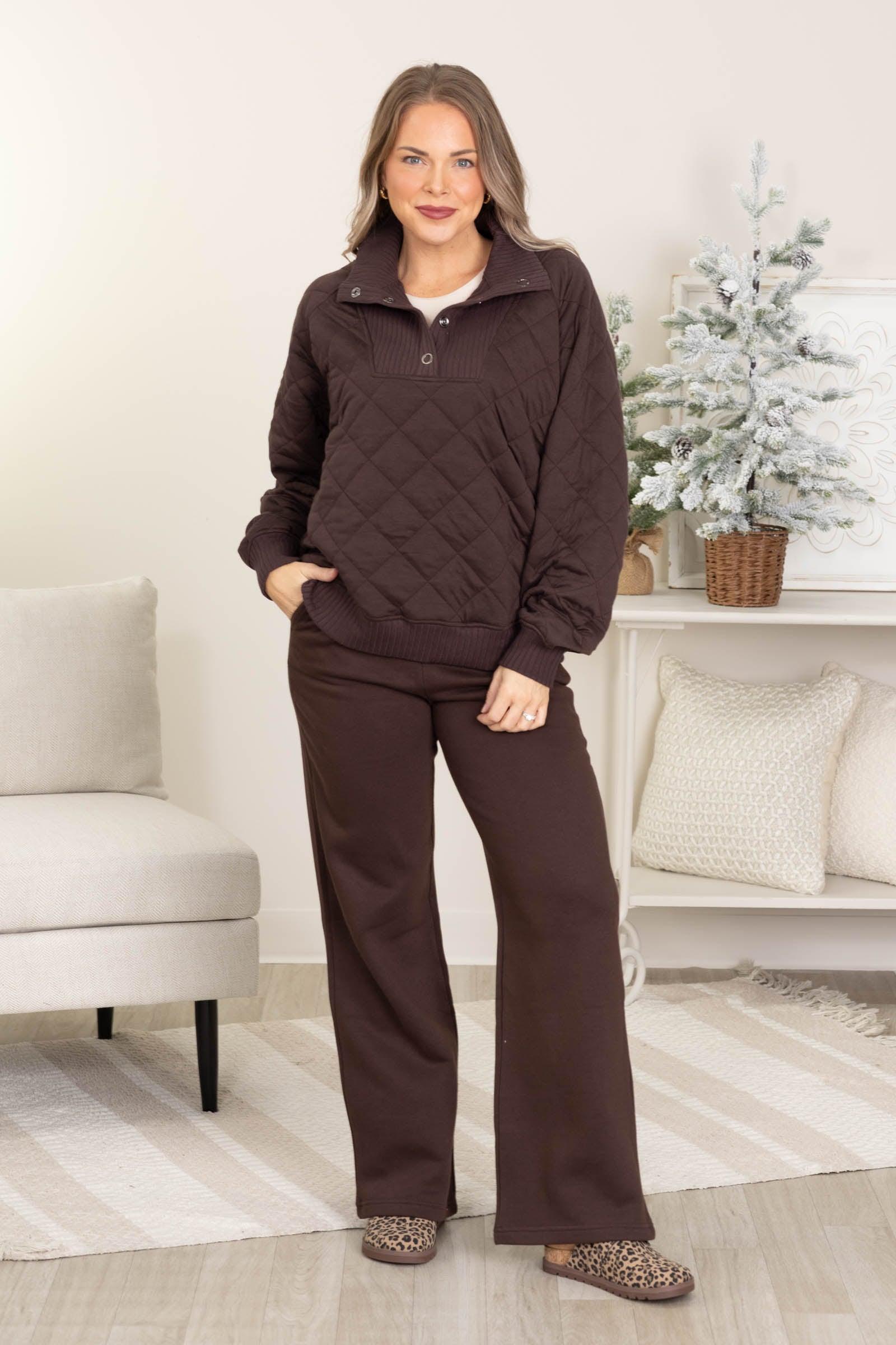 Details: Style: Trouser Sweatpant Rise: High Rise Pockets: 2 Functional Size Pockets Waist: Elastic Color/Wash: Brown/ Emerald Green Brand: Rae Mode Garment Measurements: Small: Waist: 26" Rise: 11" Inseam: 31" Medium: Waist: 28" Rise: 11.5" Inseam: 31" Large: Waist: 30" Rise: 11.5" Inseam: 31" **Erica is 5'7 + 5/27 Denim Wearing Size Medium** Our Team Size Recommendation: We recommend true to size. If you are between sizes or at the top end of your size, purchase one size up for a more cozy, spacious fit. For example, Erica wears size 5/27 in denim but prefers size medium. Small: 0-4 (Even), 1-5 (Odd) Medium: 6-8 (Even), 7-9 (Odd) Large: 10-12 (Even), 11-13 (Odd) Fabric: 60% Cotton + 40% Polyester Care: Hand Wash Cold + Hang/Line Dry