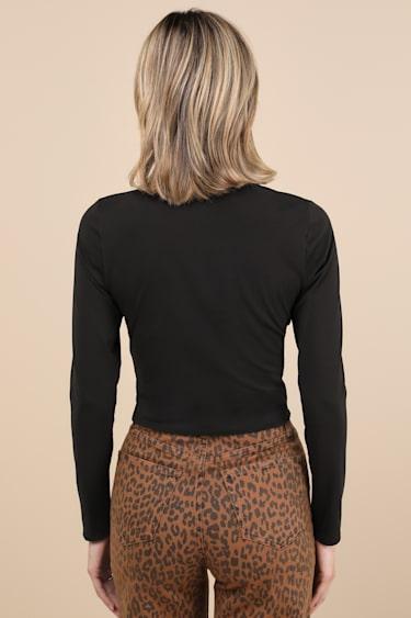 The chance for compliments is guaranteed whenever you style with the Lulus Flirty Possibility Black Twist-Front Crop Top! Stretchy jersey knit shapes this too-cute top that features a crew neckline and long sleeves. The fitted, cropped bodice features an eye-catching keyhole cutout at the front and a trendy knot-like detail along the hem.