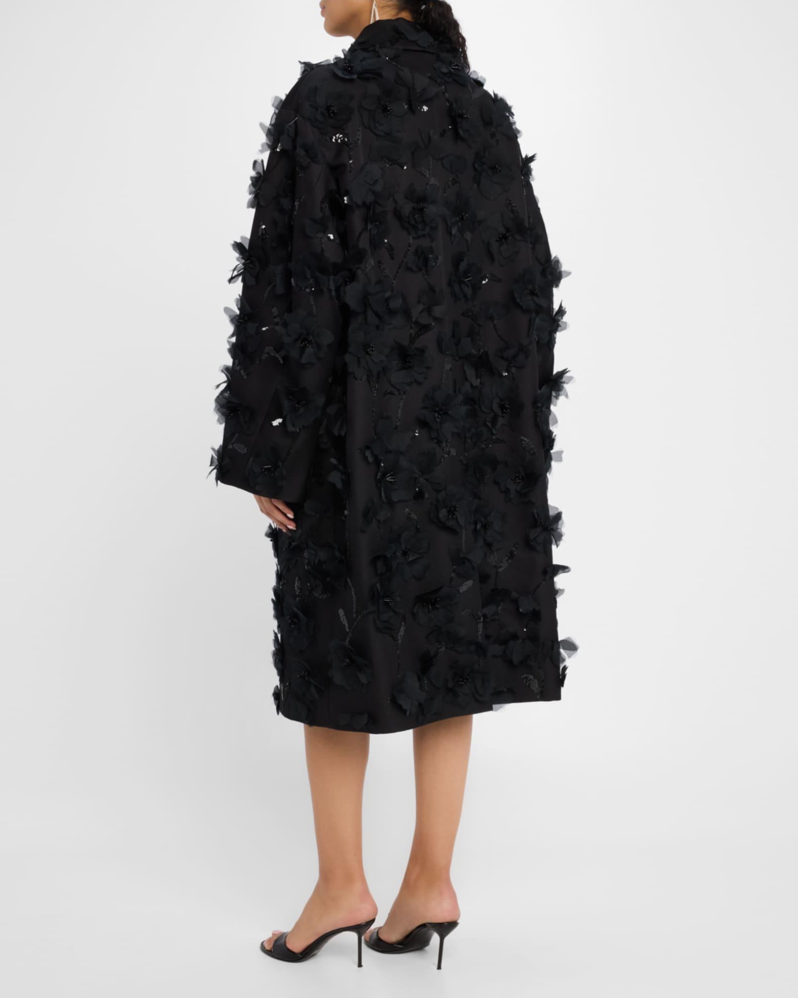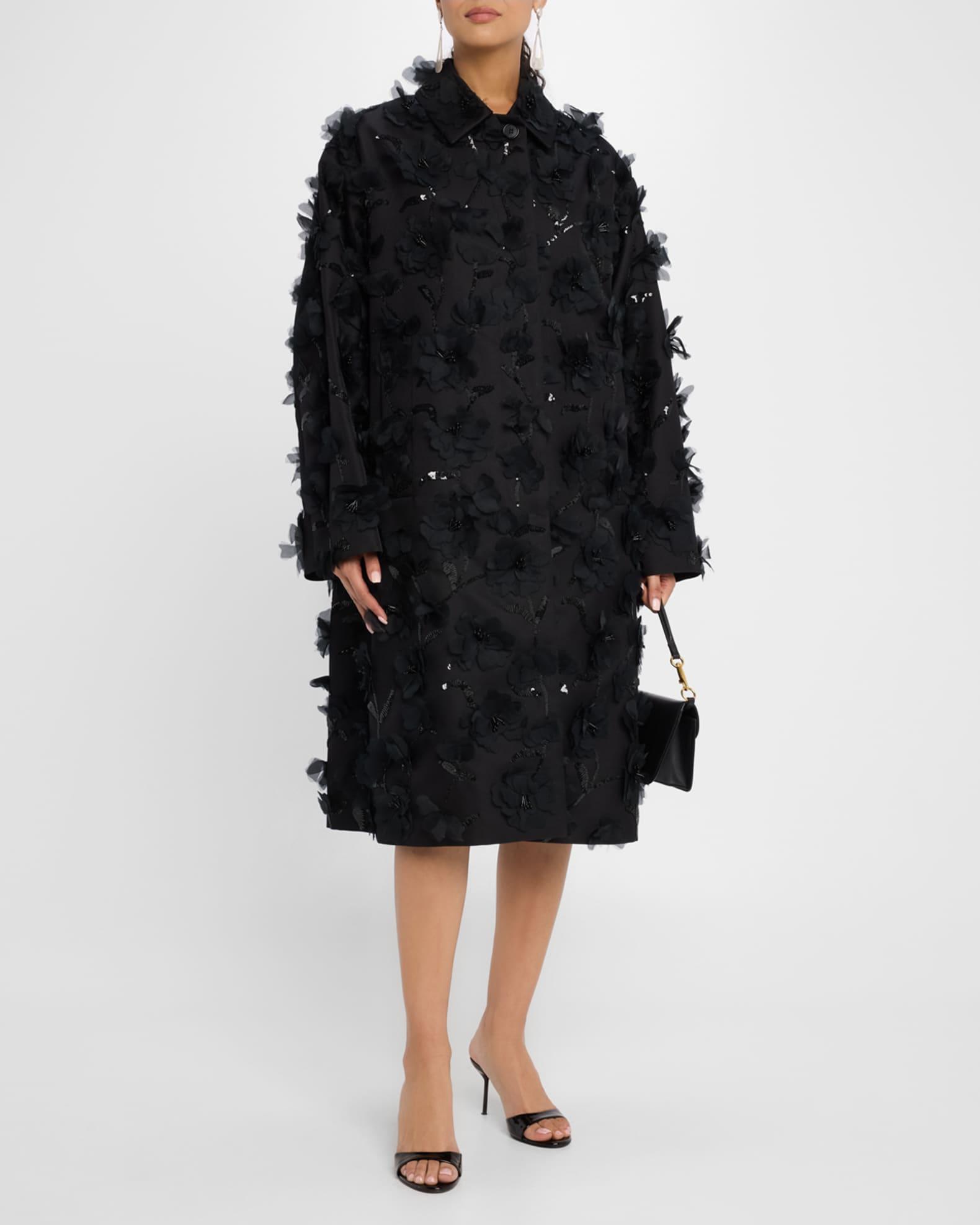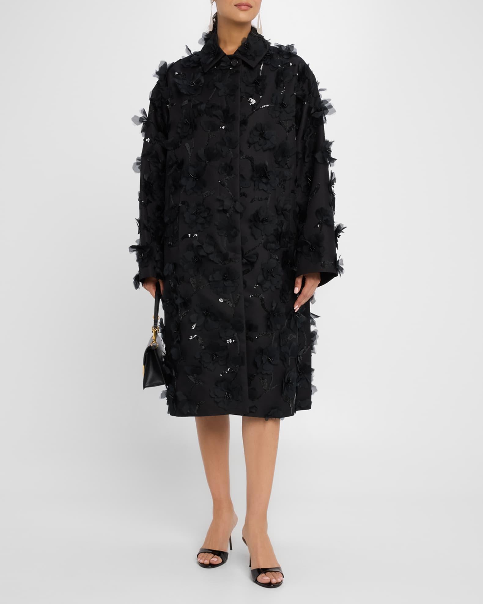 Floral Beaded Wool Balmacaan Coat