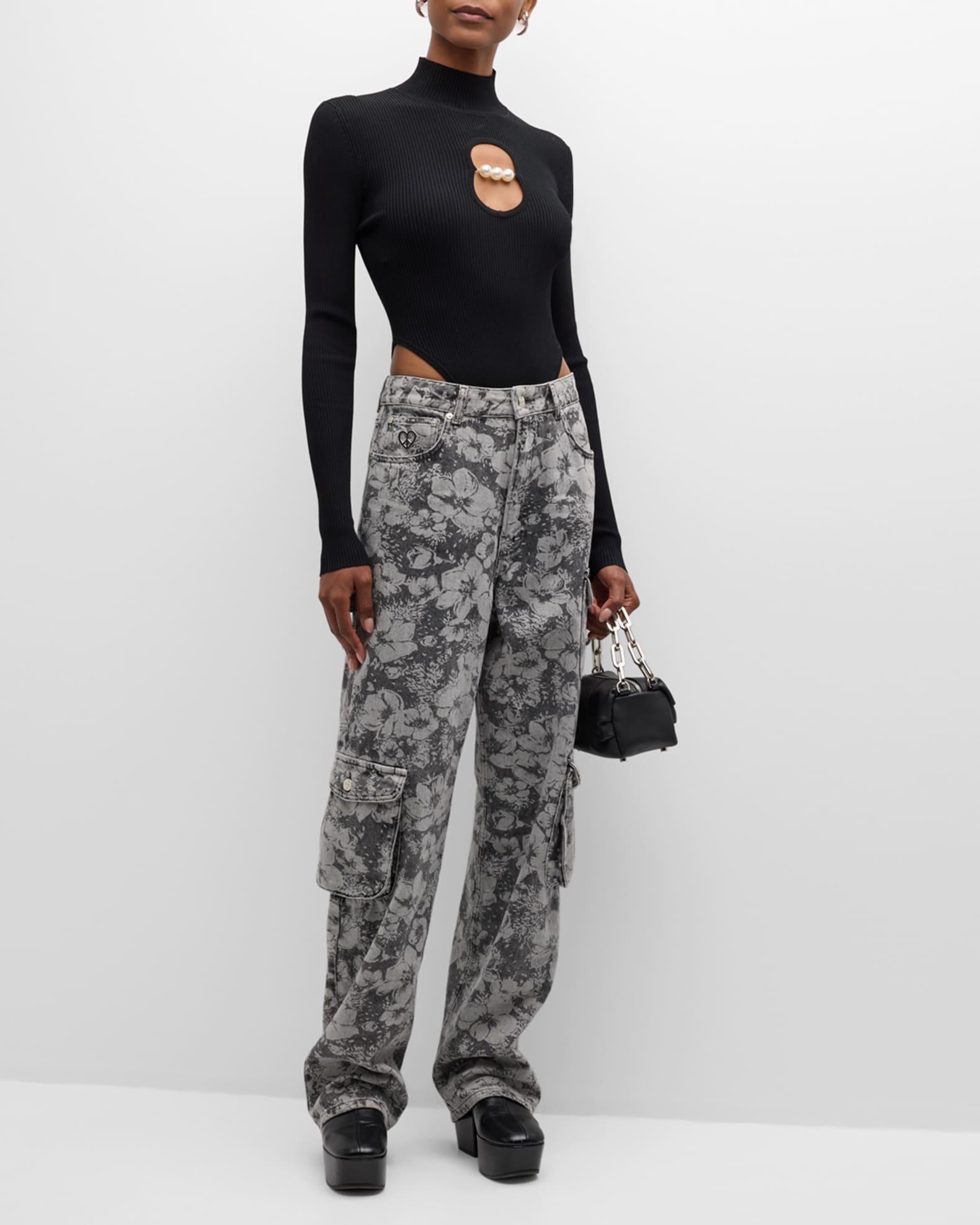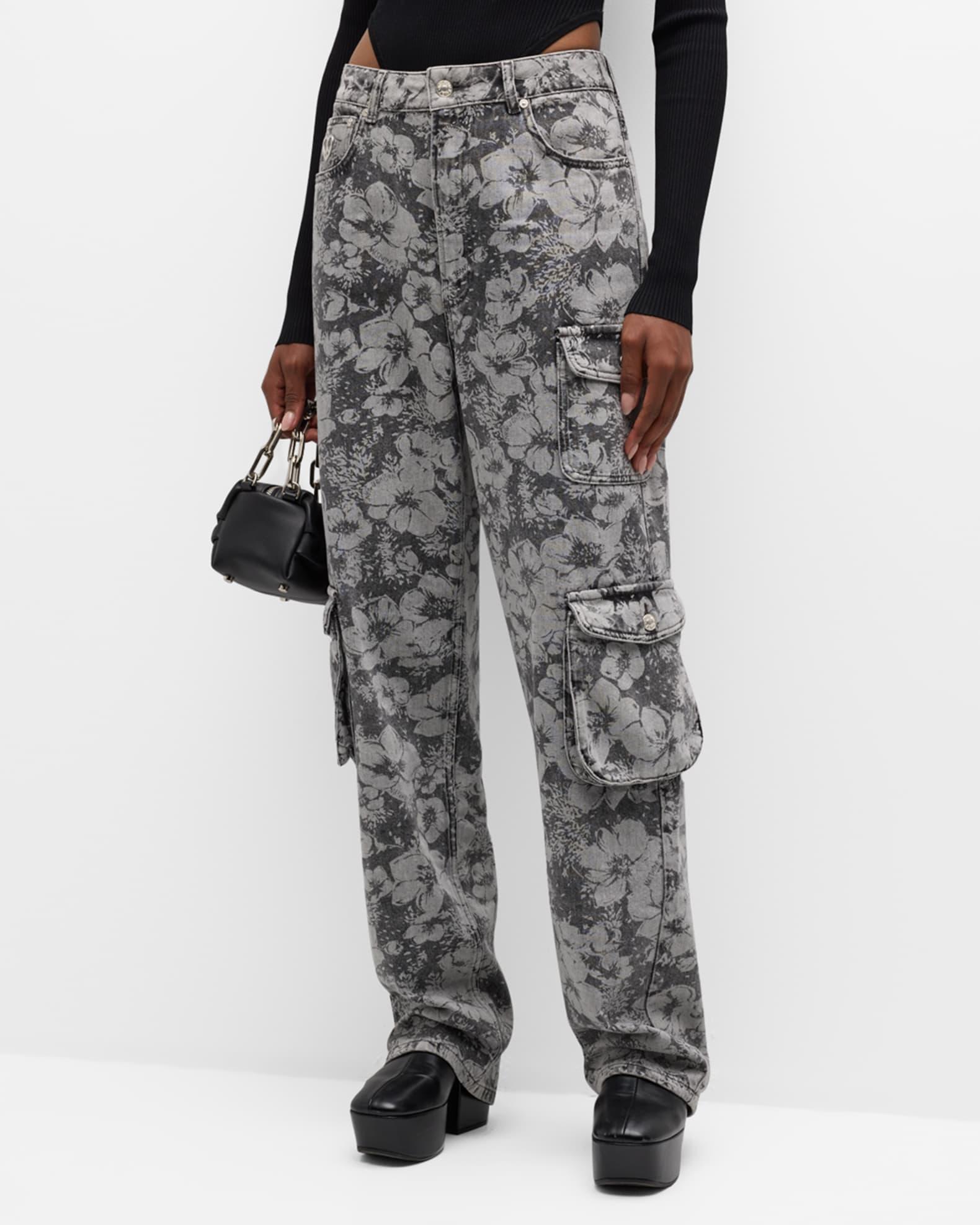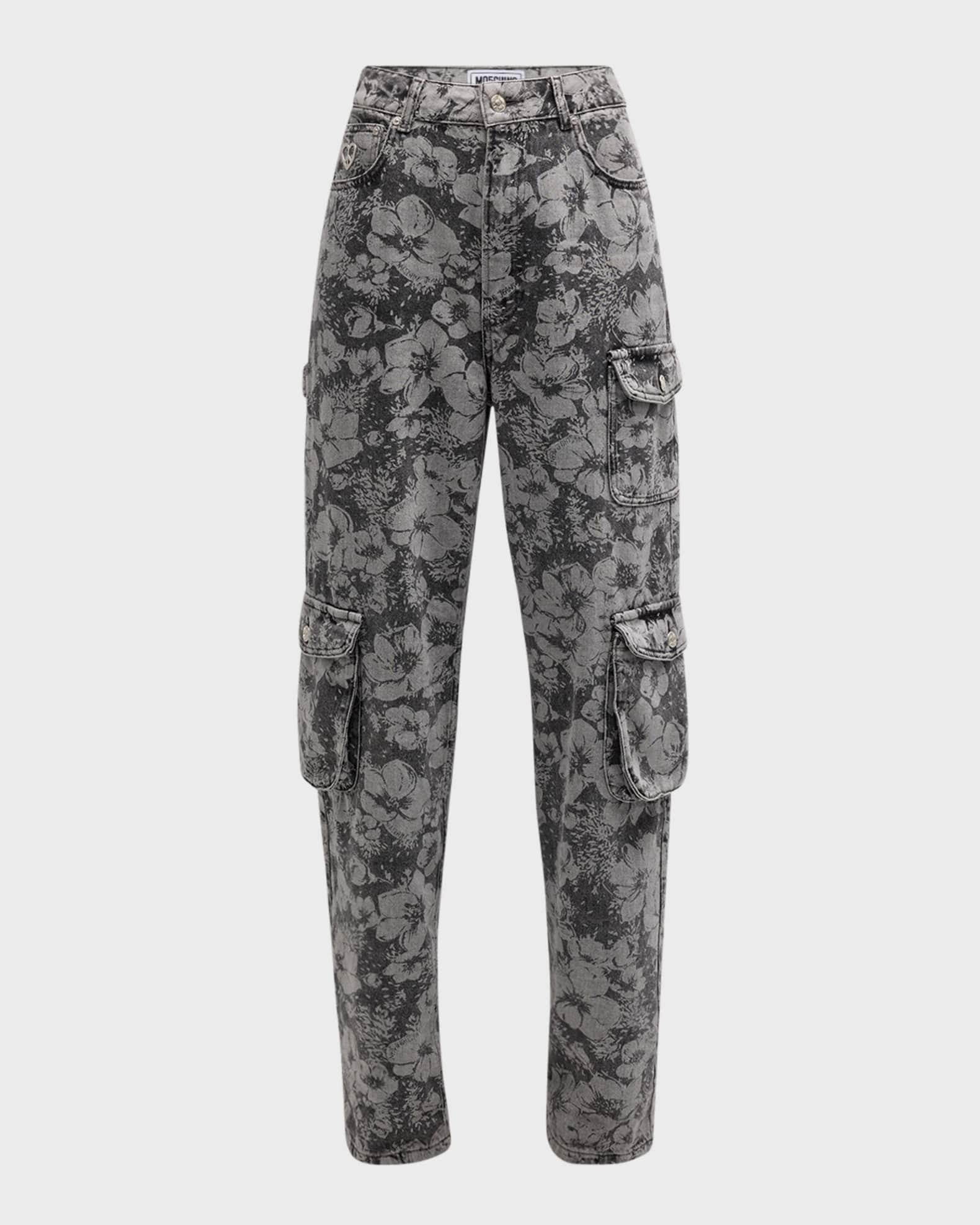 Moschino Jeans cargo pants featuring a laser-printed floral motif Mid-rise; sits high on the hip Five-pocket style; cargo pockets Relaxed, straight legs Full length Button/zip fly; belt loops Cotton Hand wash Imported Model is 5'10"/177cm.