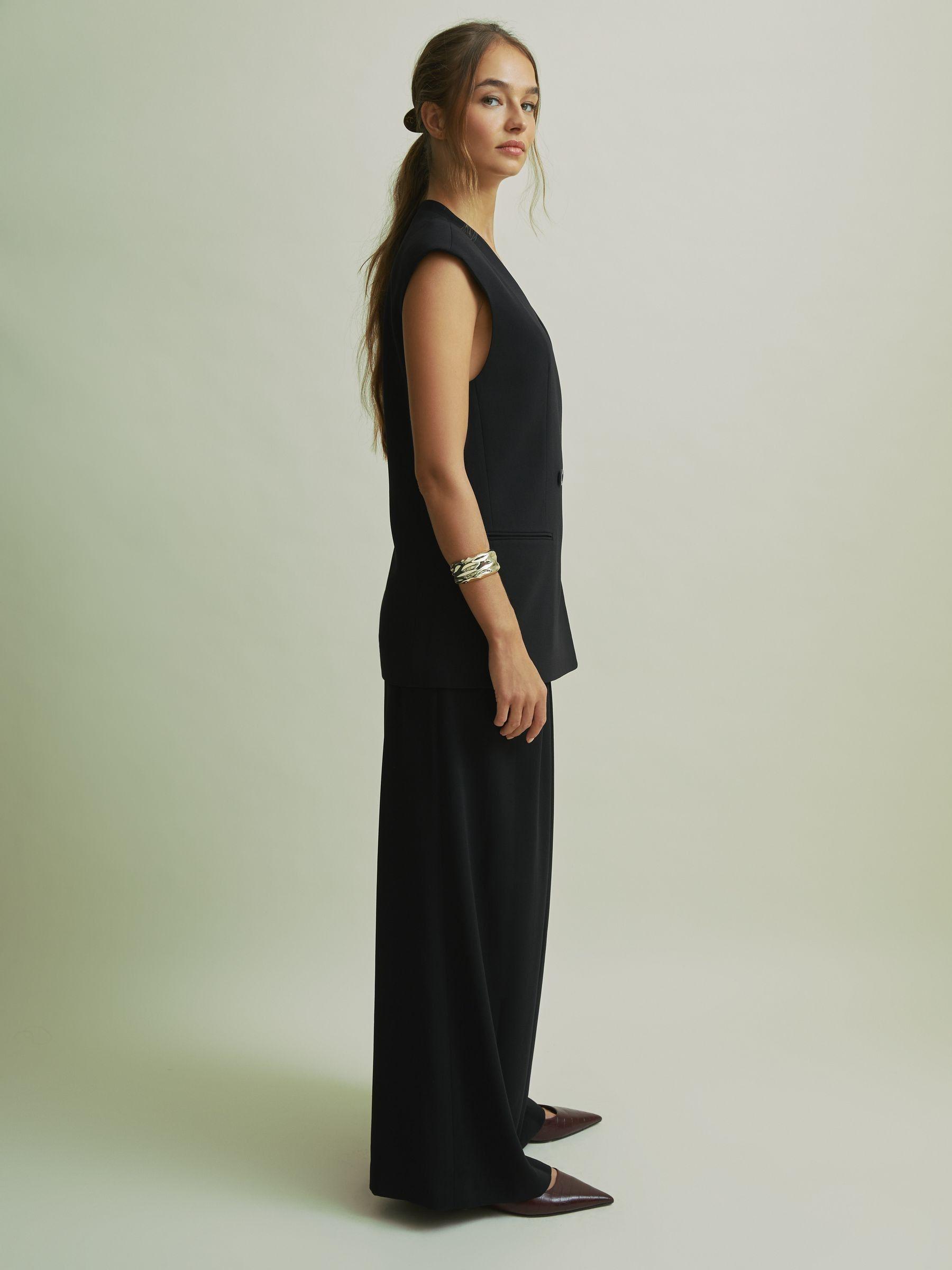 This waistcoat has a modern longline silhouette that finishes at the hips. Shoulder detailing enhances the shape. Shoulder padding. Longline silhouette. Lined Florere is a modern womenswear brand, that creates a distinct presence in the contemporary premium occasionwear market by inspiring women's wardrobes with bold colours, statement prints, distinctive detailing, and considered versatile designs.
