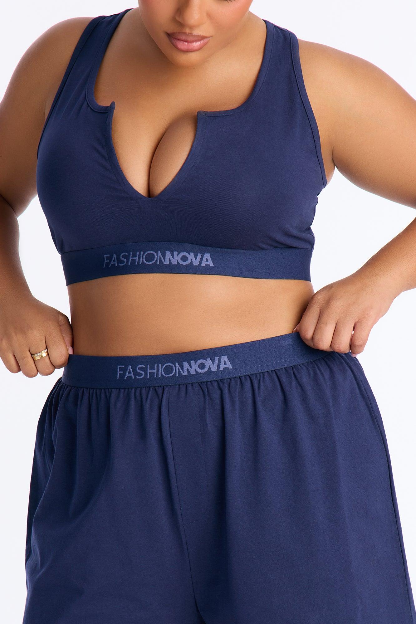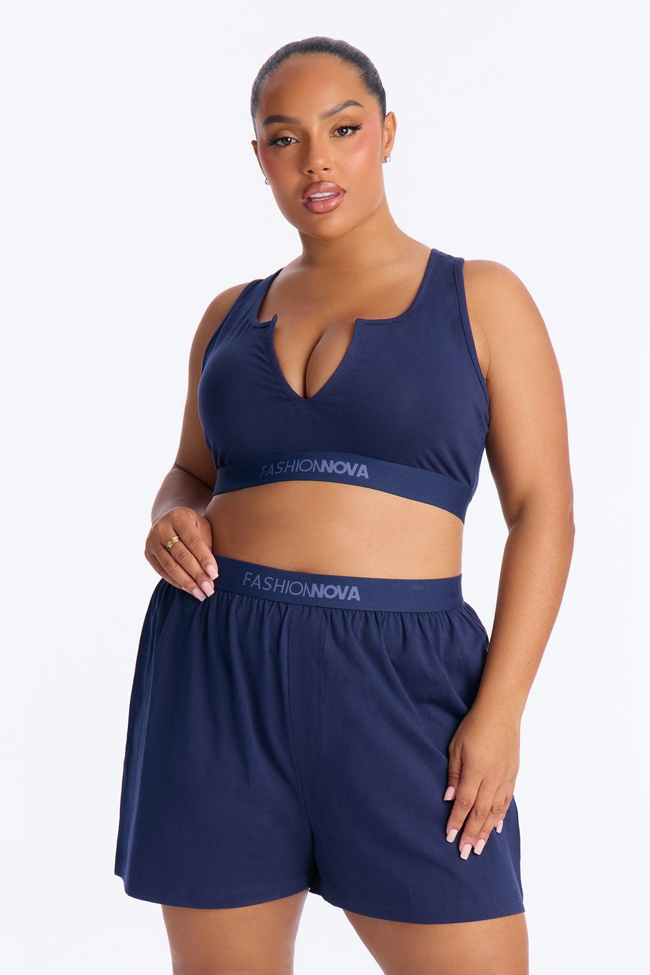 FN Mood Racerback Bralette And Loose Boxer 2 Piece Cotton Set - Navy Female