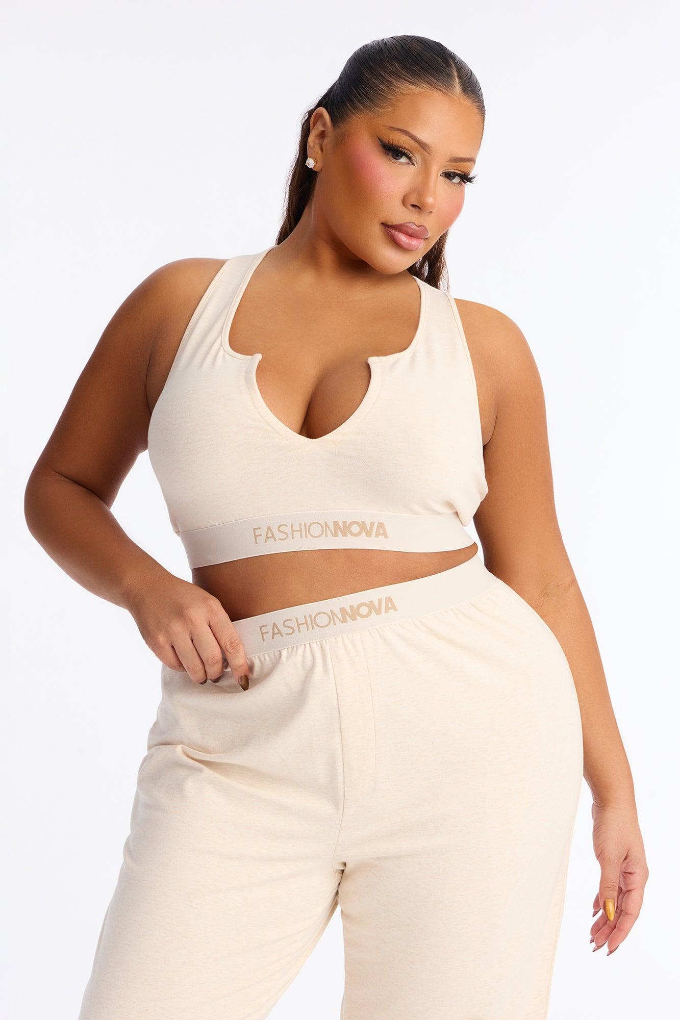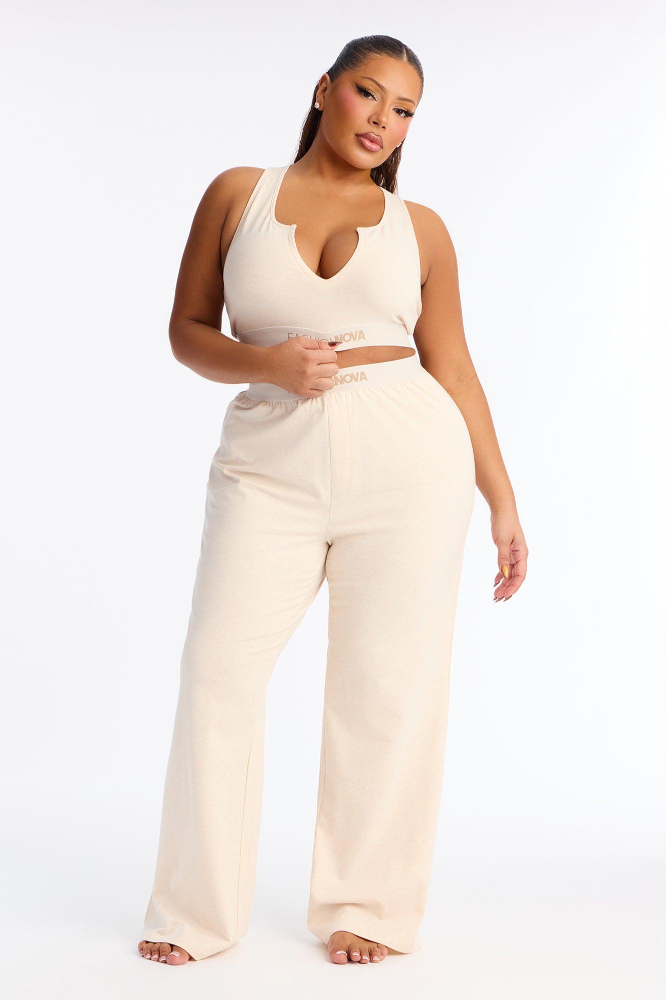 FN Mood Racerback Bralette PJ Boxer Pant Set - Oatmeal Female