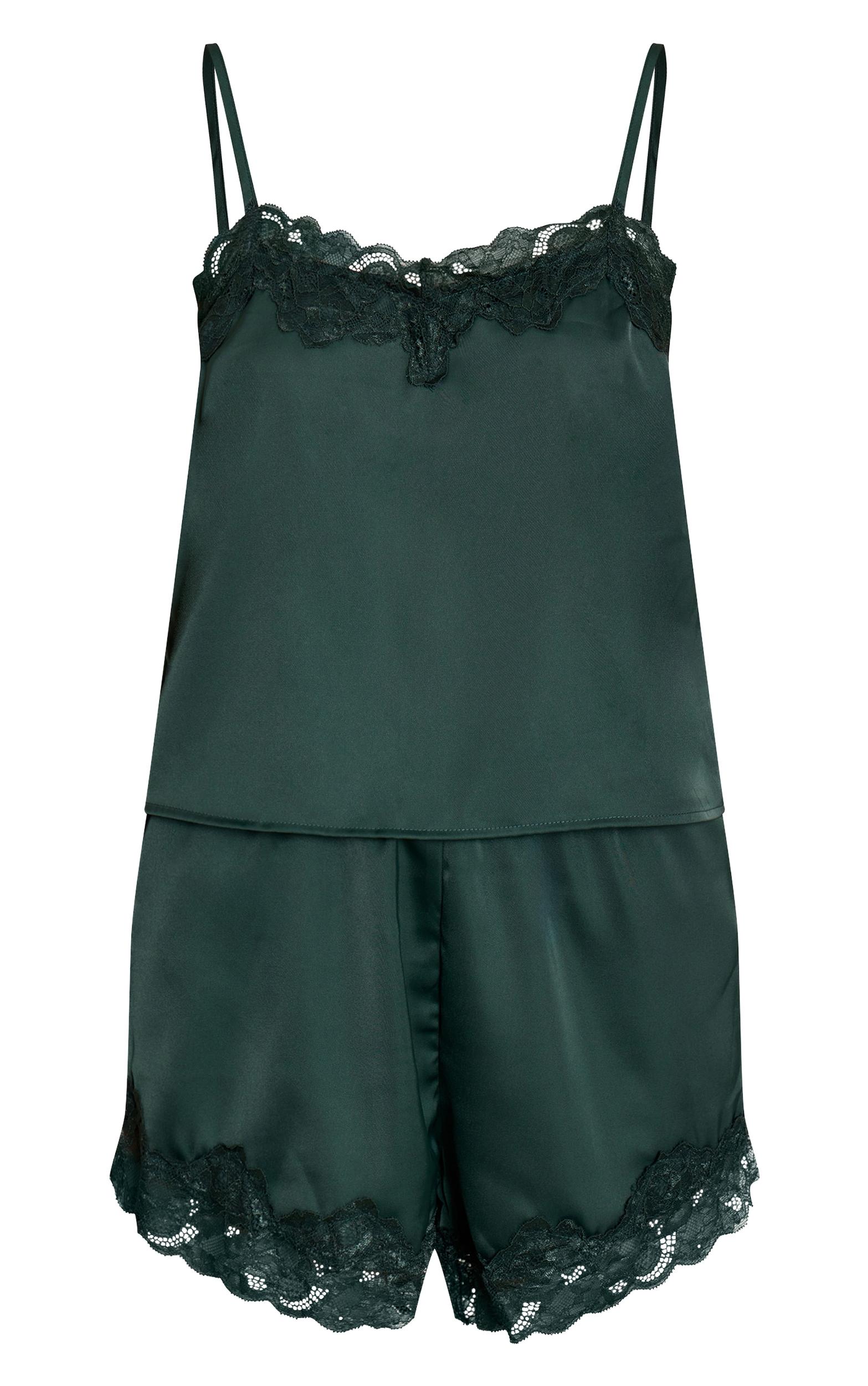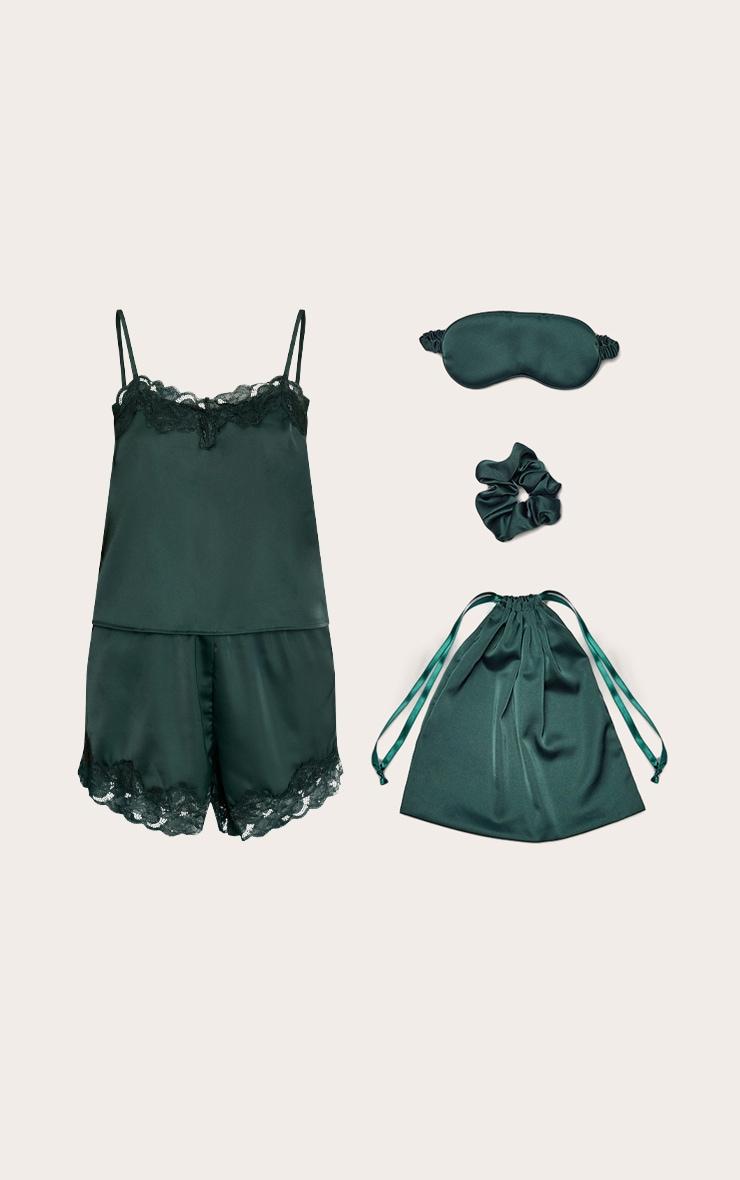 Indulge in sophisticated comfort with the forest green satin sleepwear gift bag. The set features a camisole top with delicate spaghetti straps, a lace-trimmed V-neck, and matching shorts with a lace hem, plus an eye mask and scrunchie. This ensemble is perfect for those refined mornings or chic at-home lounging sessions. For an elevated finish, complete your look with delicate gold earrings and consider clear heels for a truly confident, unexpected edge. Top length approx 48cm/19inch Bottoms length approx 33cm/13inch (Based on sample size S)Model wears size SModel Height - 5ft 7inchp]:!mb-4inch>Brand: PrettyLittleThingCategory: Lingerie & NightwearProduct type: Pyjama & Eye Mask Gift SetColor: Forest GreenMaterial: SatinOccasion: Day