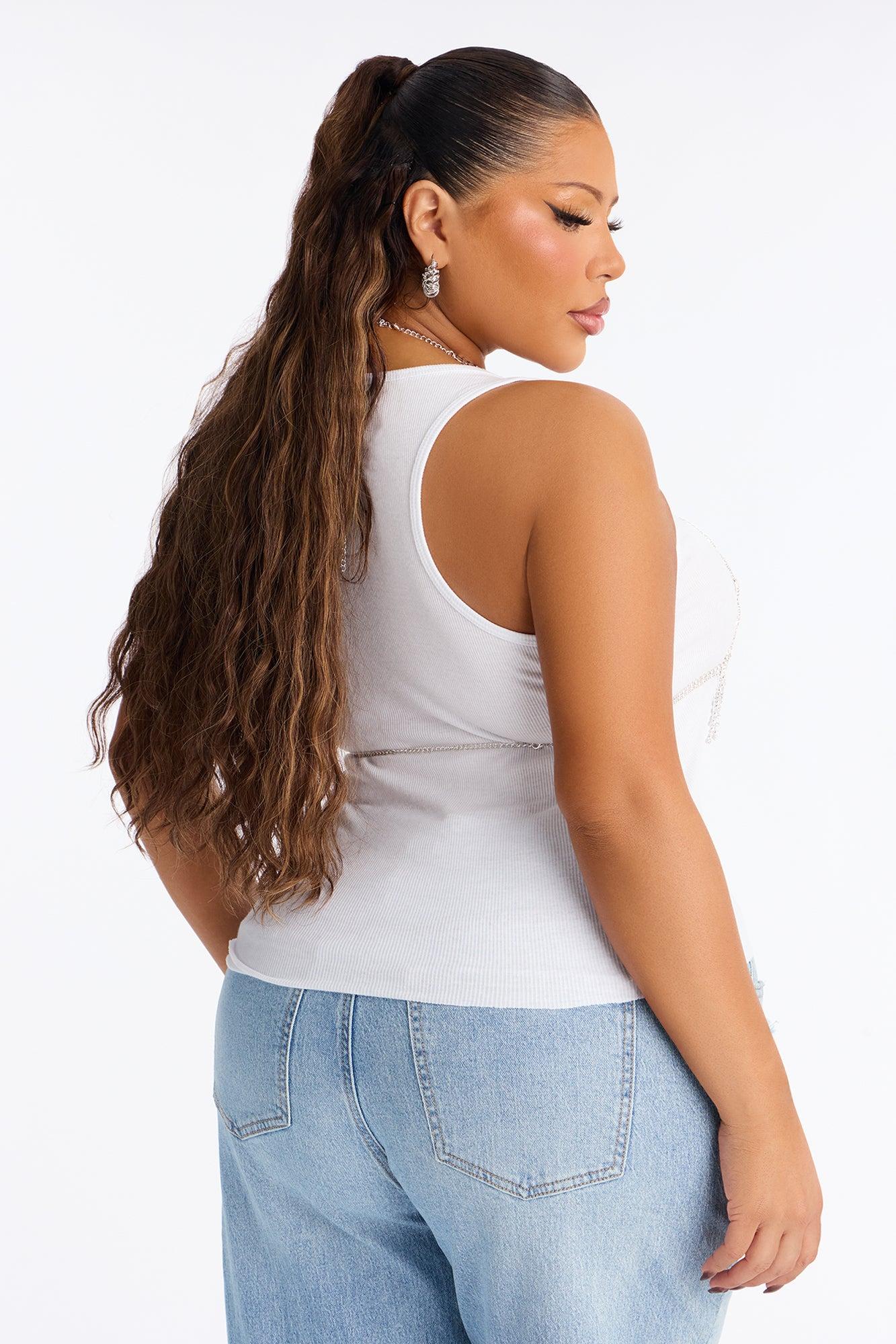 Available In Silver. Rhinestone Bra Top Adjustable Chain Strap Fringe Detail Final Sale Self : 100% Glass Imported California Proposition 65WARNING: Cancer and Reproductive Harm - www.P65Warnings.ca.gov.