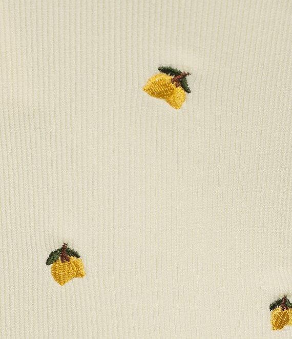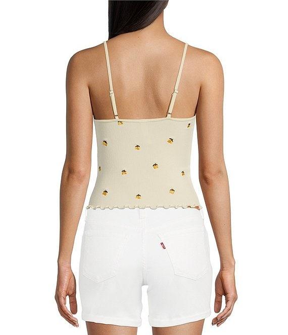 Fornia Seamless Embroidered Lemons Spaghetti Strap Camisole Top