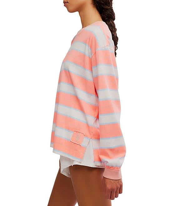 From FP Movement, this top features: Stripe print Scoop neckline Long sleeves Dropped shoulders Pullover construction Defined seaming Side slits Approx. 27" length Cotton Machine wash cold Imported.