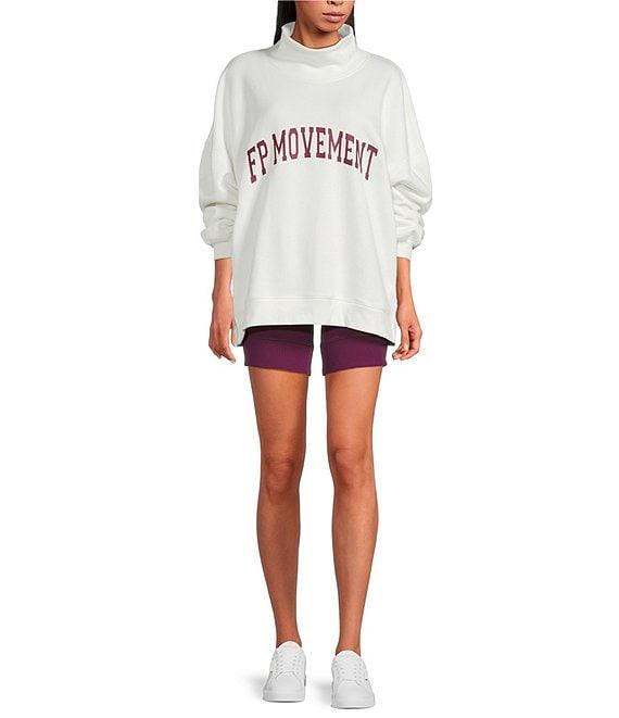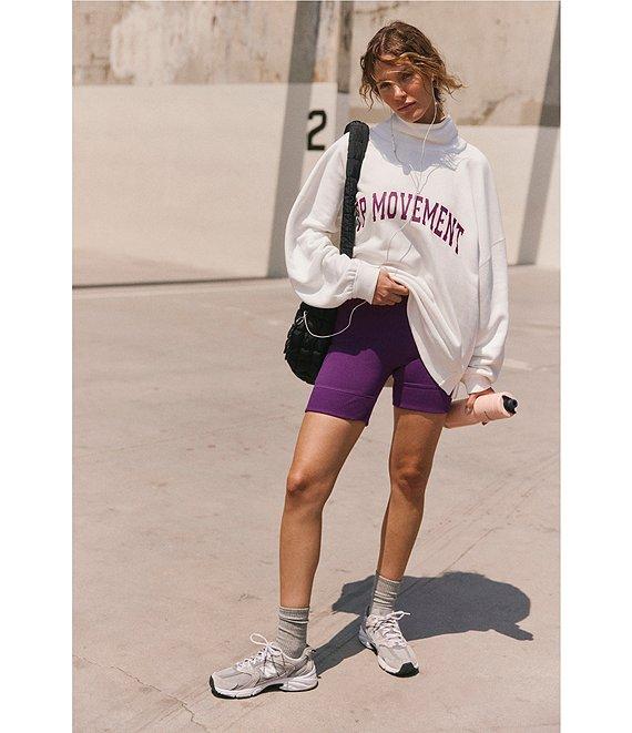 From Free People, this set features: Top: Knit fabrication FP movement logo Oversized silhouette Funnel neckline Long sleeves Dropped shoulder Pullover construction Approx. 28" length Cotton/polyester Machine wash Short: Knit fabrication High rise Bike short silhouette Ribbed trimming FP movement logo detail Pull-on construction Approx. 10" rise, 5.5" inseam Cotton/elastane Machine wash Imported.