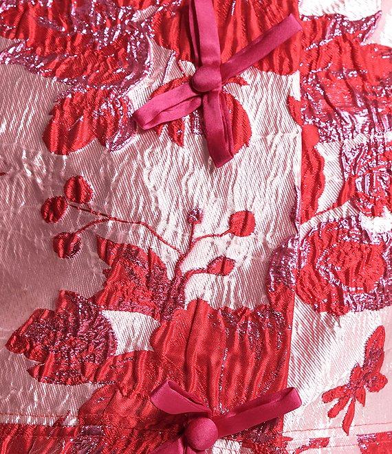 From FRANCES VALENTINE, this jacket features: Metallic floral jacquard fabrication Point collar neckline Caplet sleeves A-line silhouette Bow detail Side pockets Straight hem Button front clousre Approx. 36.75" length Polyester/nylon/metallic; lining: polyester Dry clean Imported.
