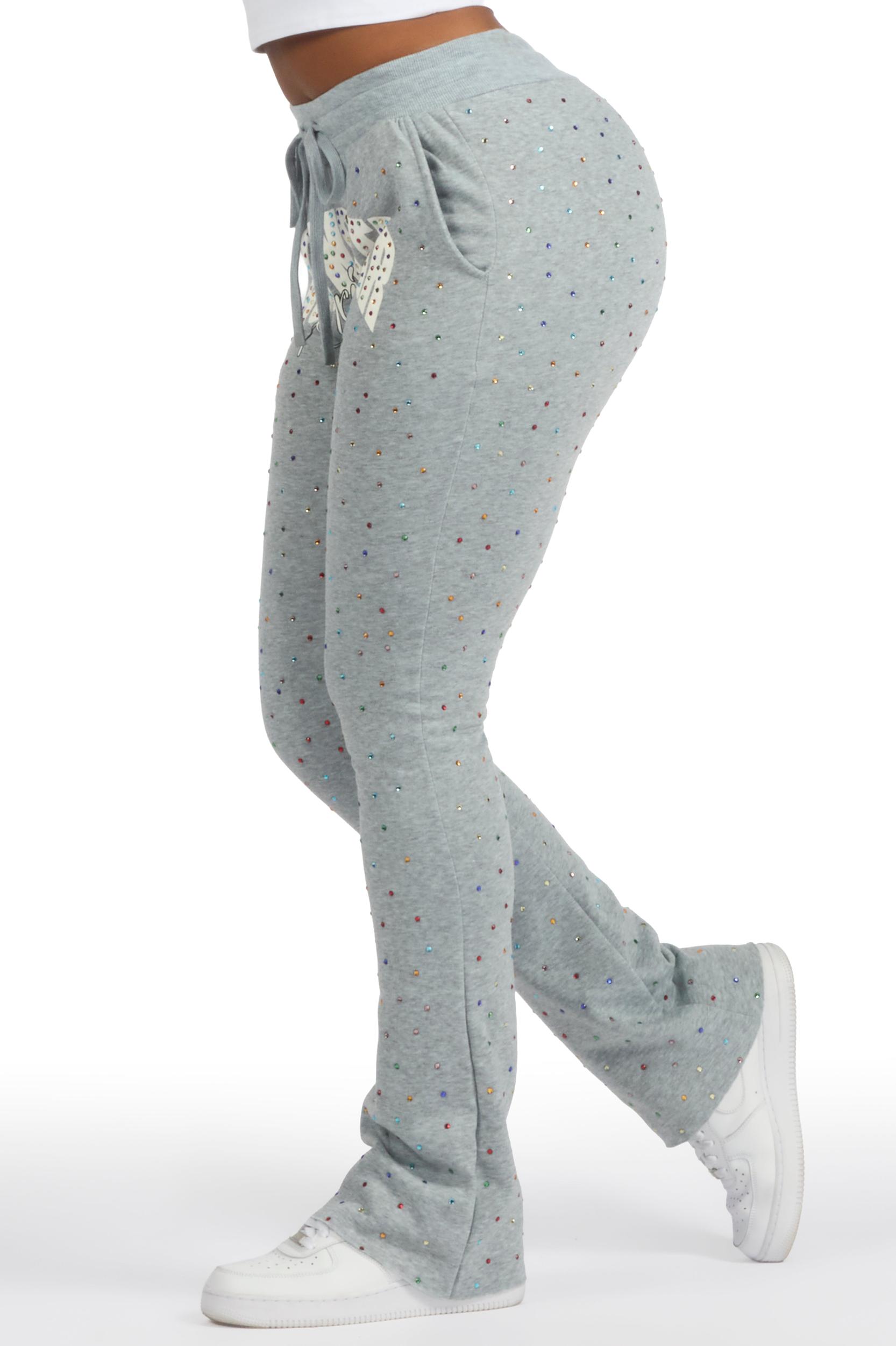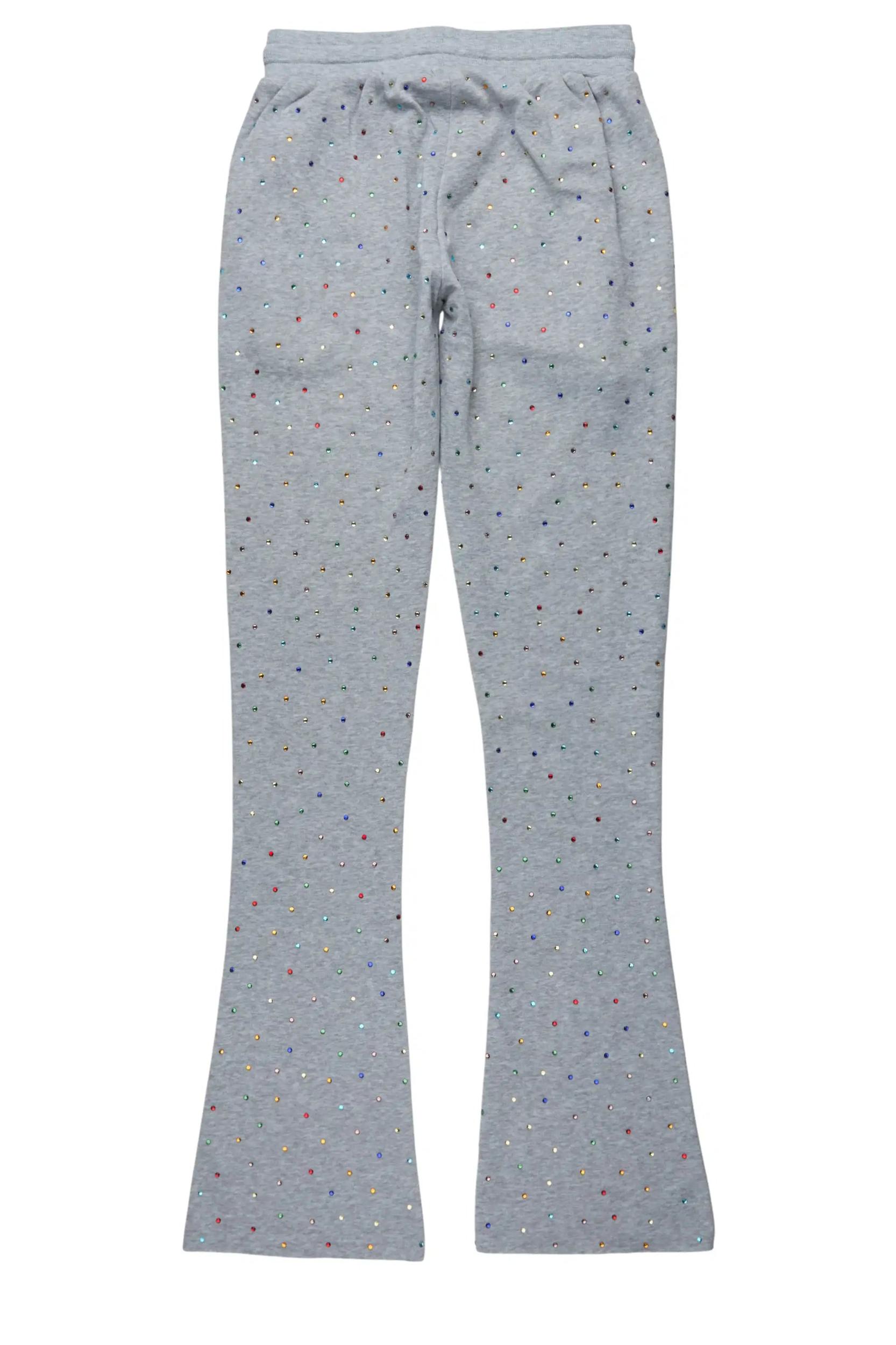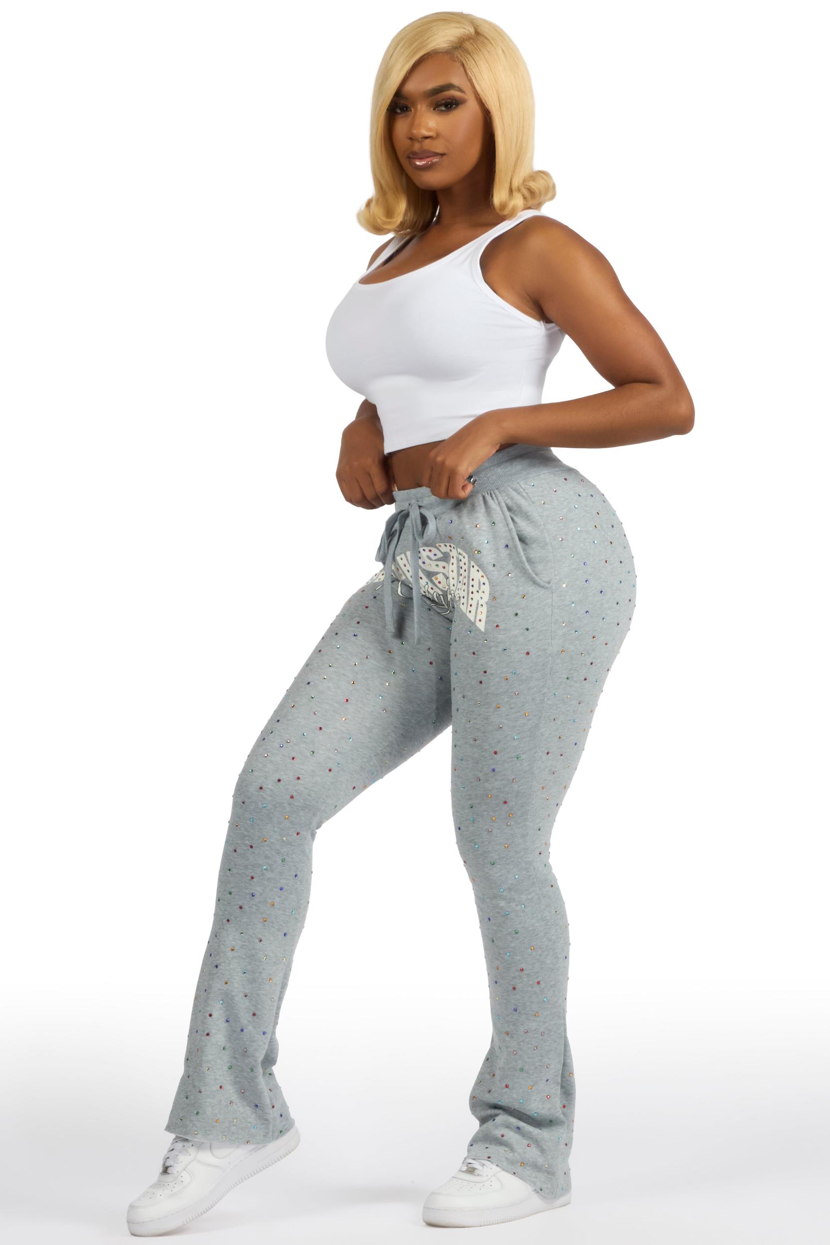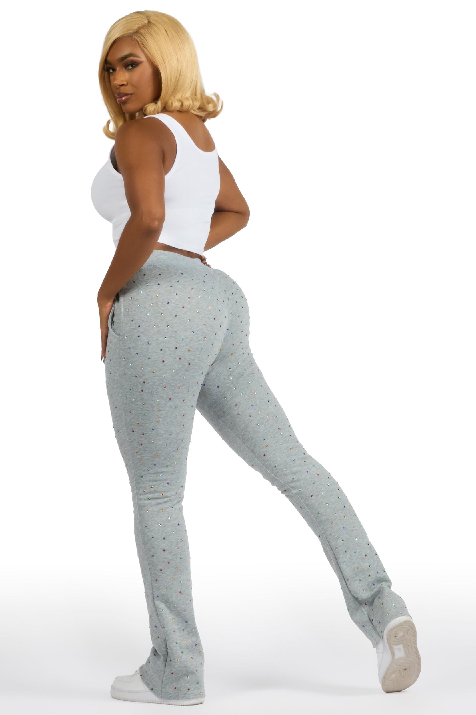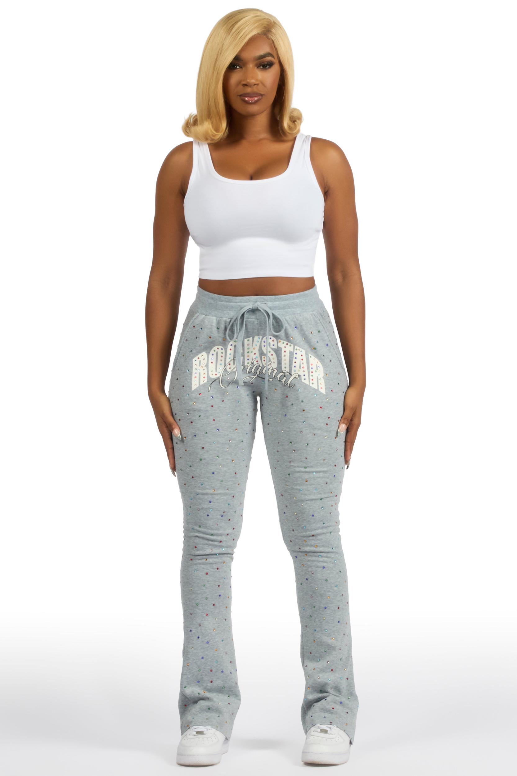 Franchesca Heather Grey Rhinestone Stacked Track Pant Female