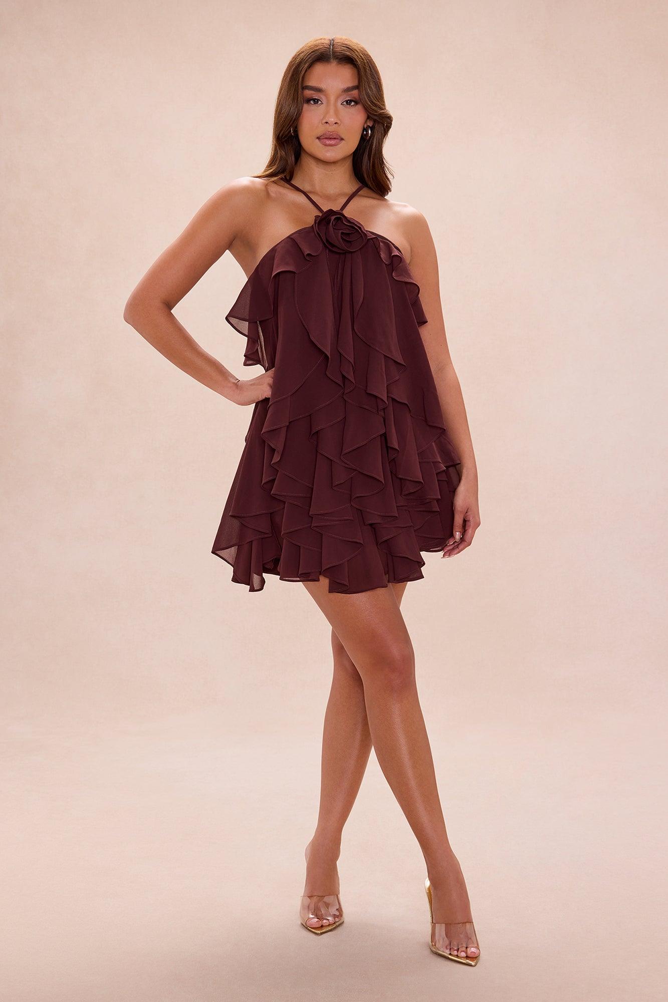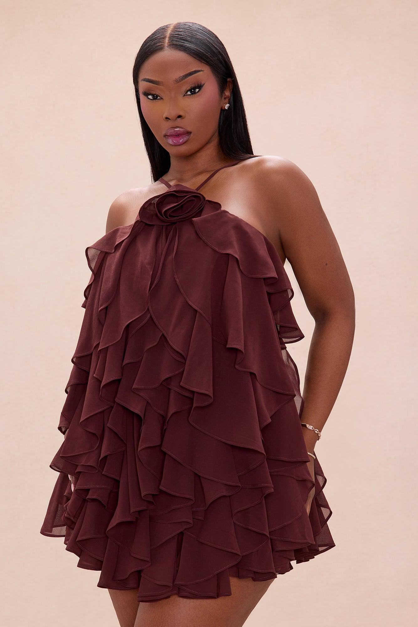 Free As Can Be Ruffle Mini Dress - Chocolate Female