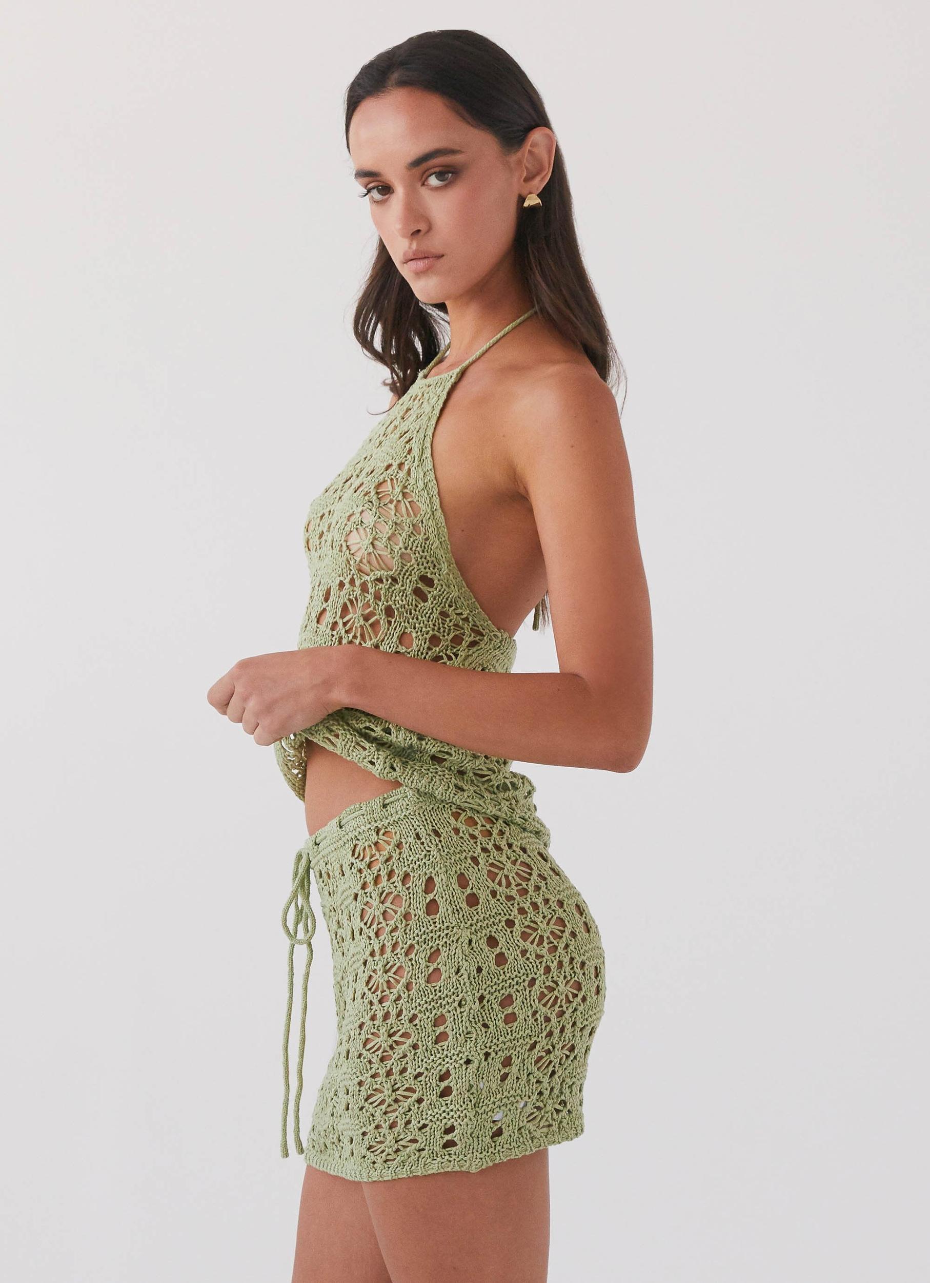 Peppermayo Exclusive Don't forget to pack this gorgeous Free Mind Crochet Mini Skirt for your next vacation! Brought to you sheer, floral embossed crochet fabric, wear this mini all summer long with the Free Mind Crochet Top and your favourite bikini! - Mini skirt - Mid rise - Sheer design - Drawstring elasticated waist - Unlined - Crochet knit fabric Size S/M measurements: Length 32cm Waist 66cm Hip 86cm Roberta wears size US 2 (X-Small or AU 6 equivalent)