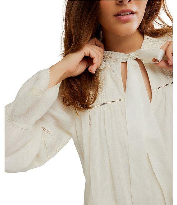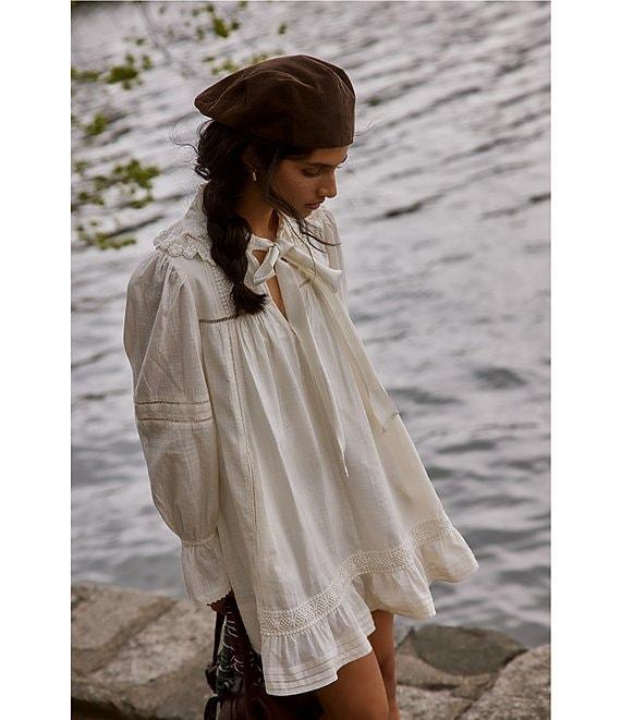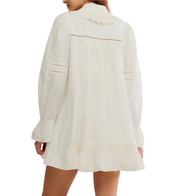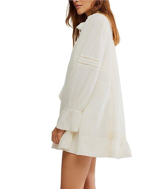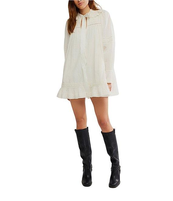 From Free People, this dress features: Cotton fabrication Tie-detail neckline Long sleeves Pullover construction Defined sleeve cuff detail Lace and ruffle detail Approx. 32" length Cotton Lining: Cotton Lace: Cotton Machine washable Imported.