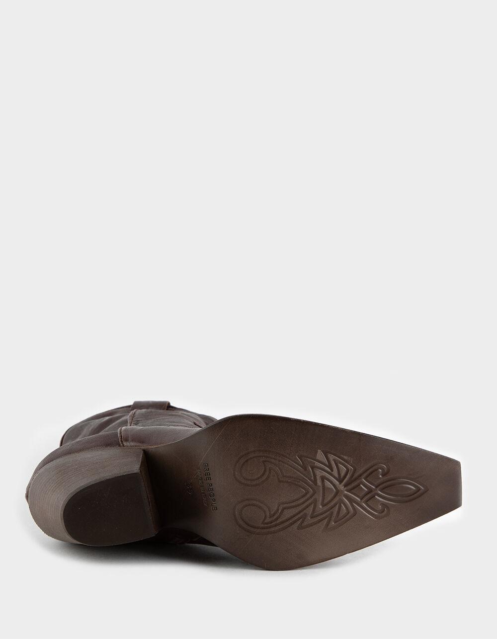 Free People Brayden Western Boots. Gorgeous Italian-crafted leather boots featured in a western-inspired style with an etched metal toe, slim sit and stacked heel. Side zipper closure. Cushioned insole. Curved top. 7" shaft. 9.84" ankle circumference. 3.5" heel. 11.02" top circumference. Leather. Imported. Size Info:This style runs small. If between sizes, Free People suggests sizing up.