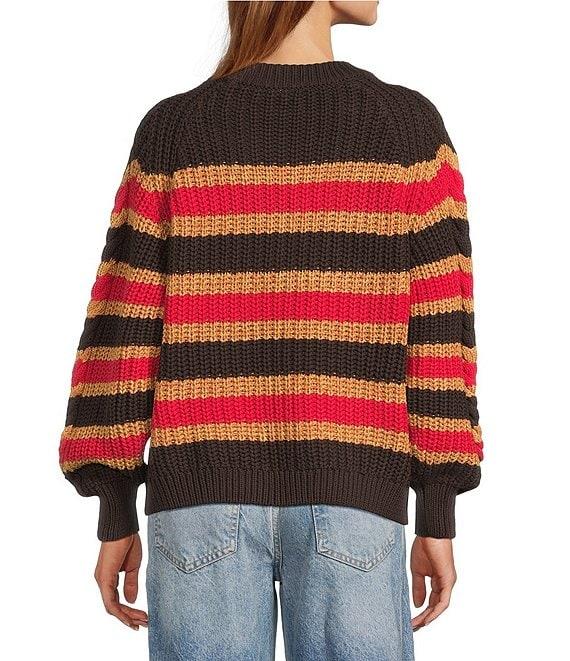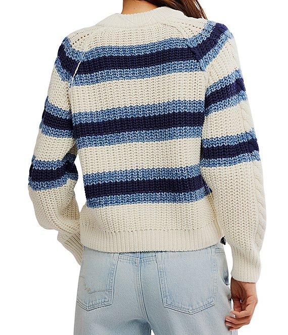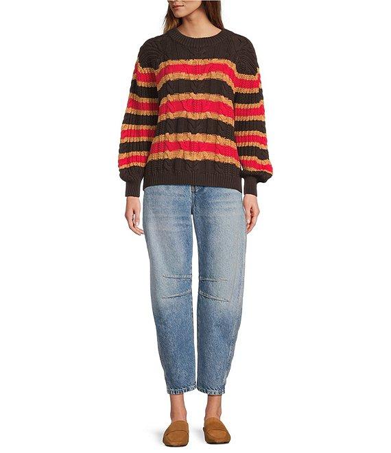 Free People Frankie Cable Stripe Crew Neck Long Sleeve Sweater