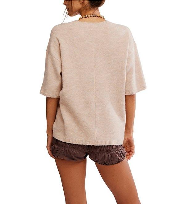 From Free People, this top features: Sweater knit fabrication Crew neckline Short sleeves Drop shoulder sleeves Oversized silhouette Approx. 24.5" length Polyester/Acrylic/Polyamide/Elastane Hand wash Imported.
