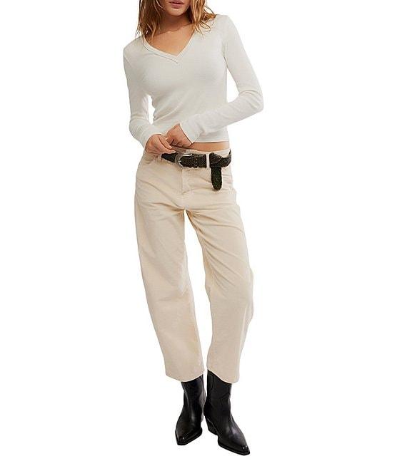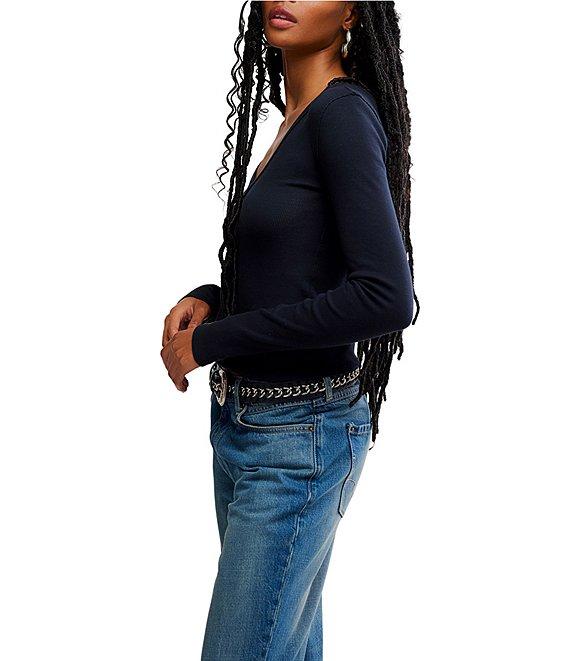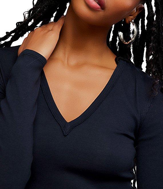 Free People Neria V-Neck Long Sleeve Exposed Seam Tee