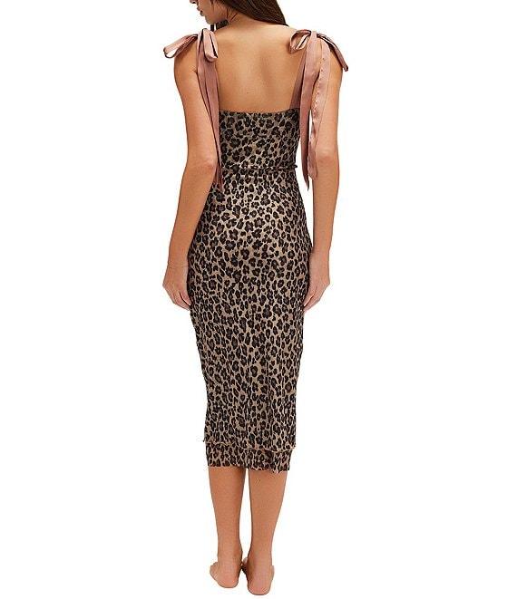 Free People Printed Got Glam Leopard Print Mesh Sleeveless Slip Midi Dress