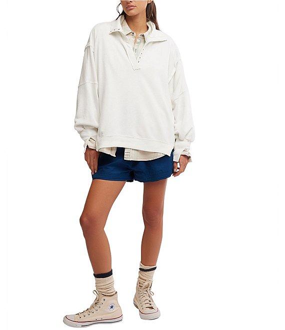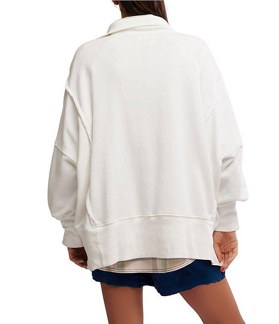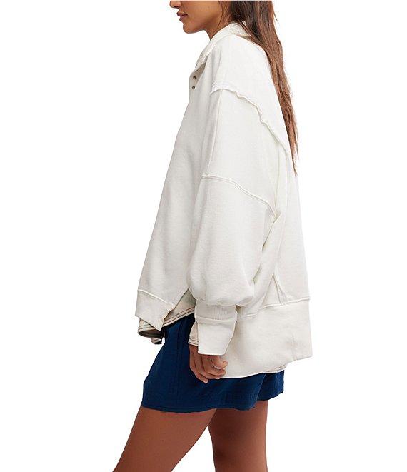 From Free People, this sweatshirt features: Soft fabrication Henley/collar neckline Long sleeves Exposed seam detail Side slit detail Ribbed hemline Snap buttons at neckline Pullover construction Approx. 28.5" length Cotton/polyester Machine wash/dry flat Imported.