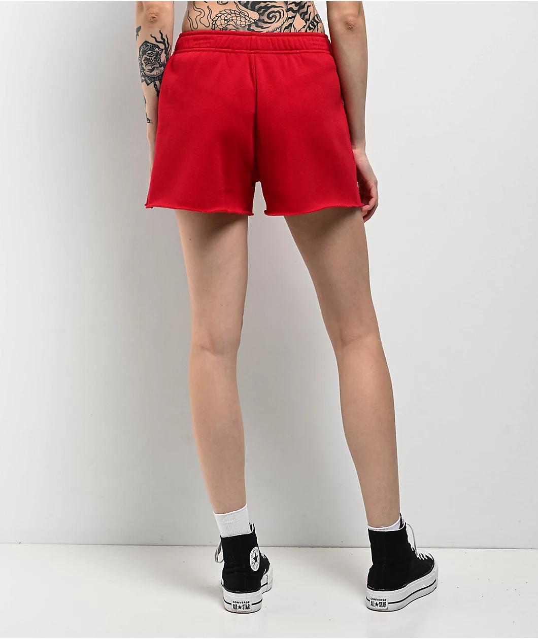 Landing in a vibrant red color, Freeworld proudly presents the Juliet sweat shorts with unfinished, cutoff leg openings and a small, printed graphic on the left leg. Employing two hand pockets for easy access storage, the cotton blend loungewear feat