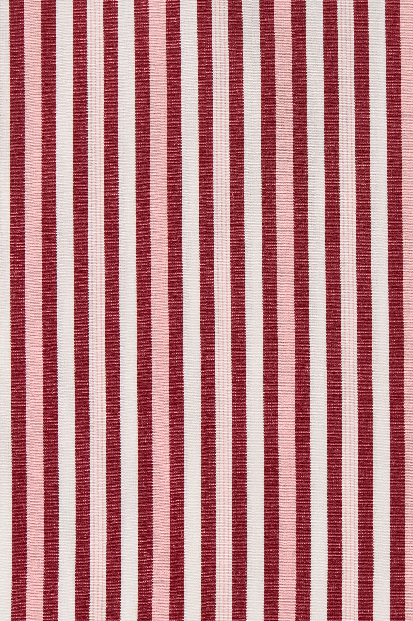 A relaxed playsuit with an oversized collar-style shirt with long flared sleeves and an elasticated waist, finished with a simple drawstring. From the waist they fall into a wide boyfriend-style short. Designed from a signature 100% organic cotton in a custom yarn-dyed vacation-inspired stripe, bringing together different tones of pinkin a custom red and white stripe, it is the perfect lightweight travel companion. This style is true to size. It is intentionally designed to offer an oversized silhouette and is recommended you proceed with your regular size. The elasticated waist offers additional stretch.