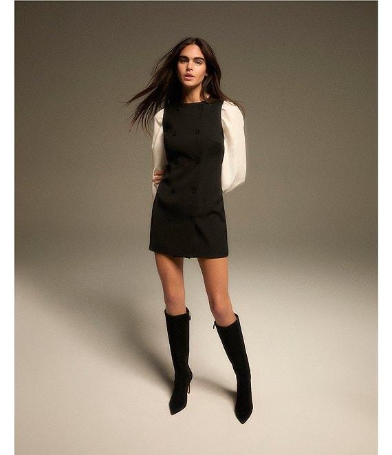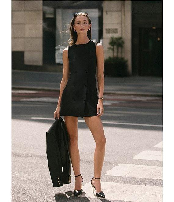 French Connection Harrie Suiting Double Breasted Crew Neck Sleeveless Button Front Mini Dress