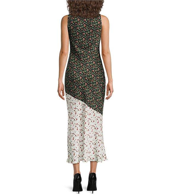 French Connection Julia Ditsy Bloom Colorblock V-Neck Sleeveless Slip Maxi Dress