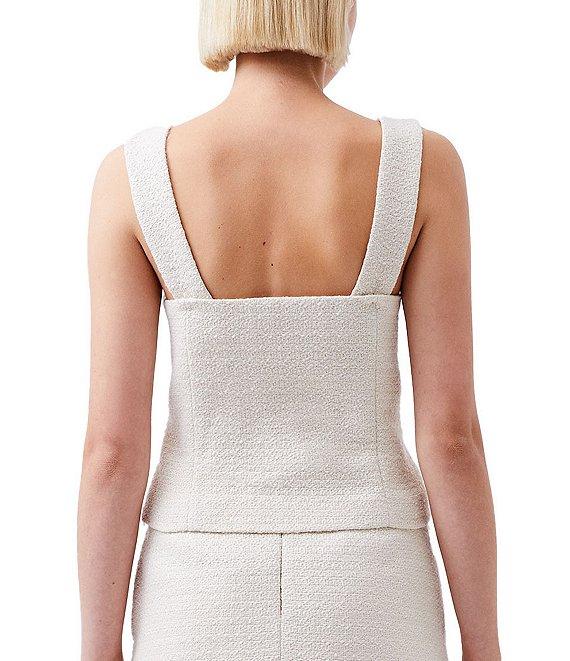 French Connection Structured Tweed Square Neck Sleeveless Novelty Button Front Top