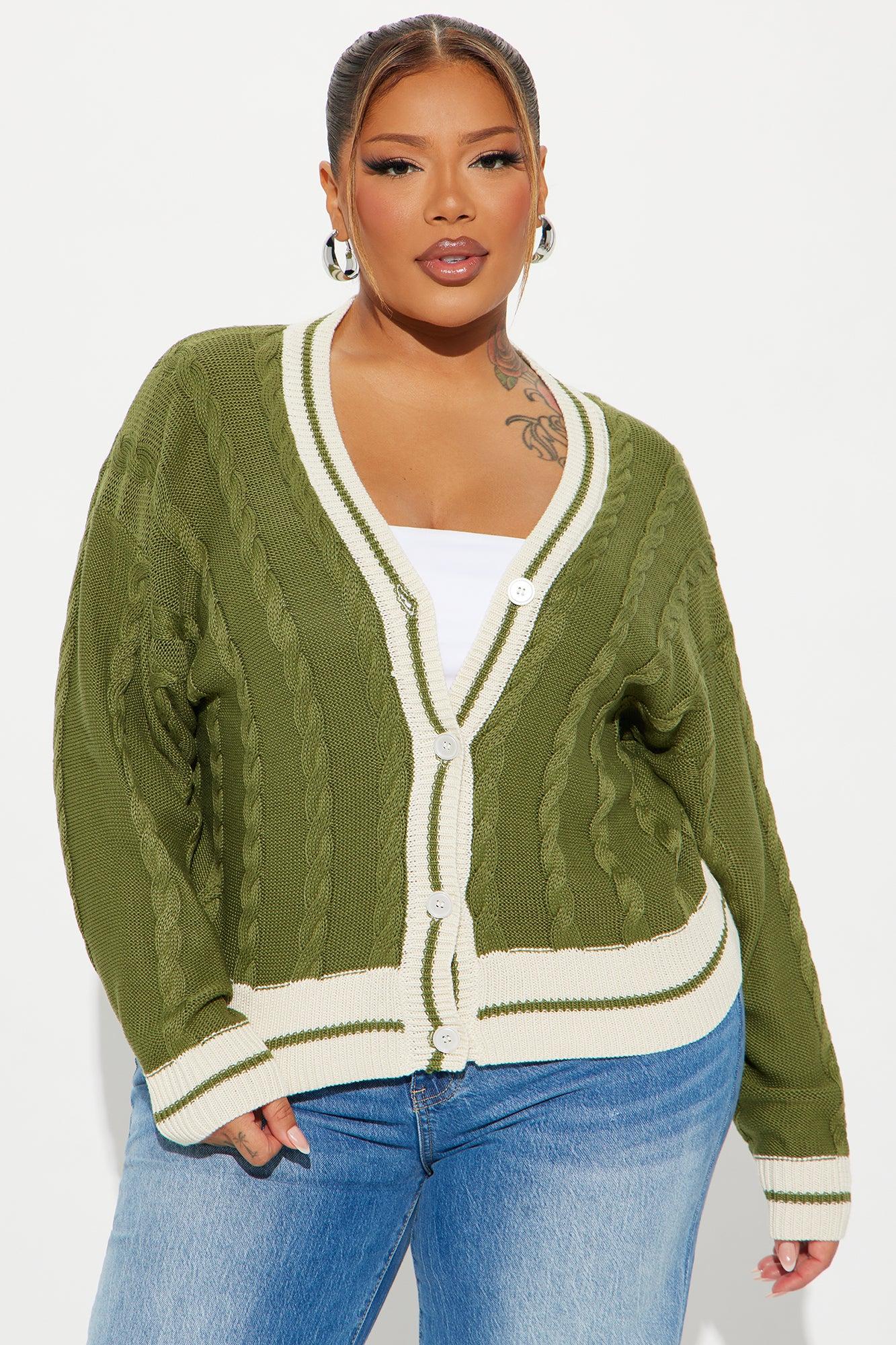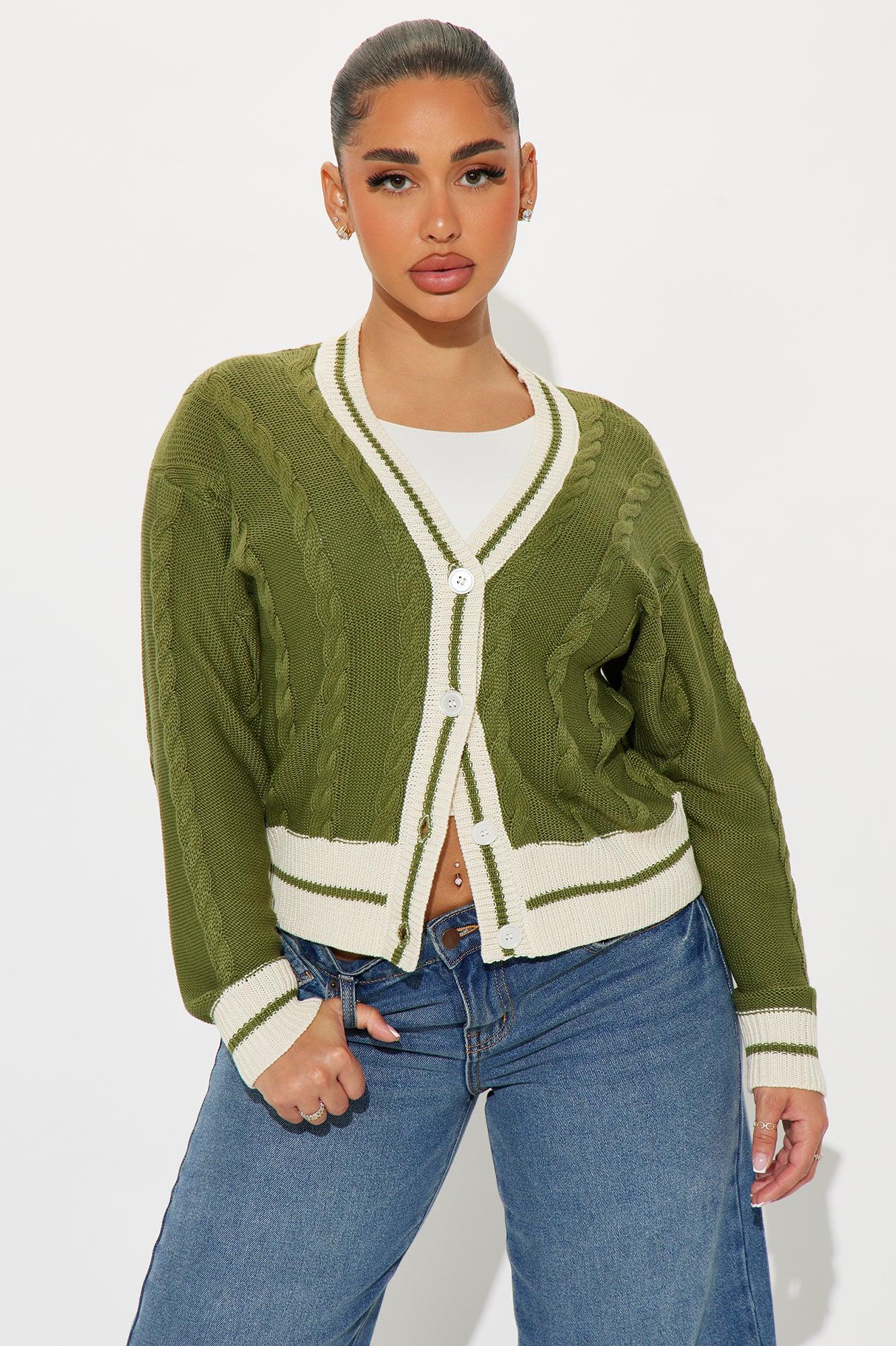 Available In Green/combo. Cardigan Sweater Varsity Stripe Long Sleeve V Neck Button Down Braided Detail Ribbed Hem 100% Acrylic Imported California Proposition 65WARNING: Cancer and Reproductive Harm - www.P65Warnings.ca.gov.