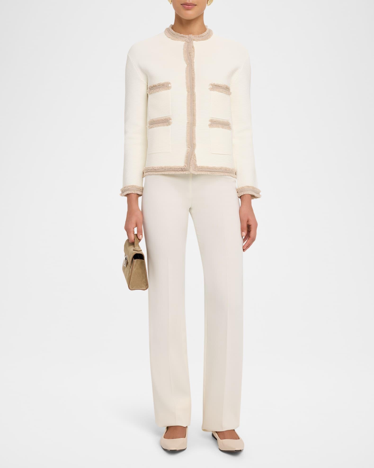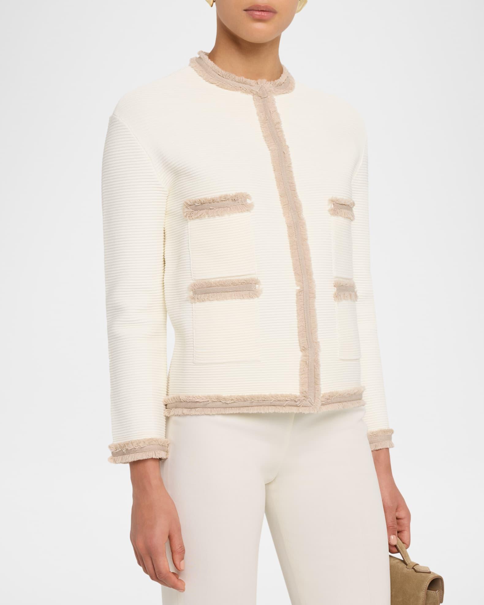 Fringe-Trim Ottoman Ribbed Blazer