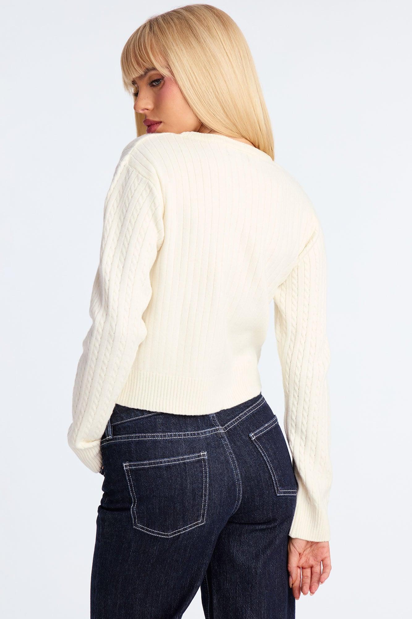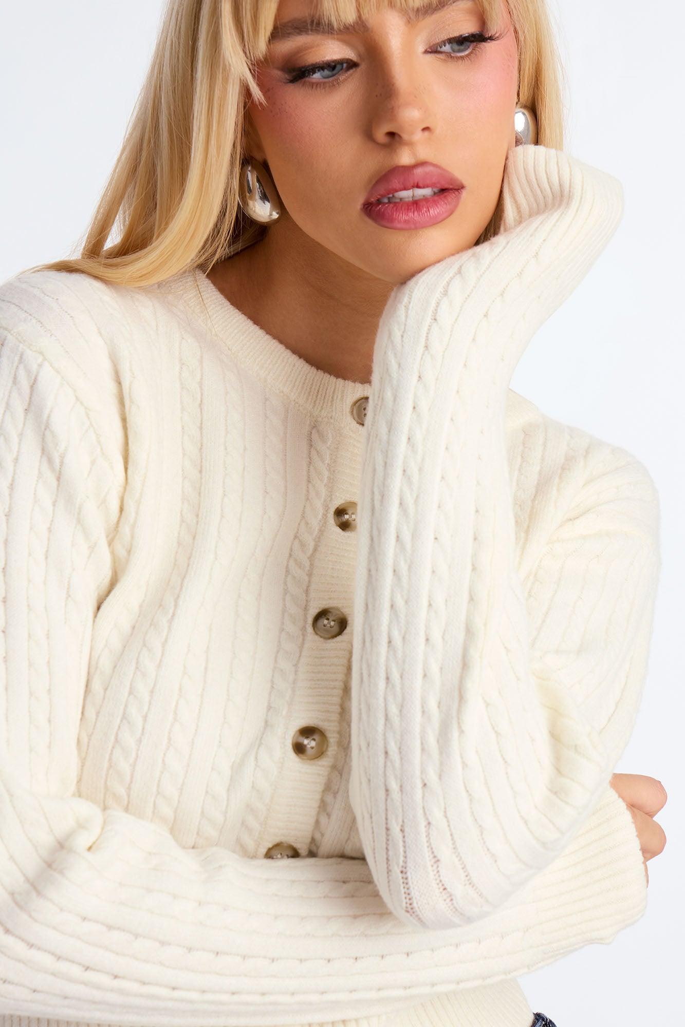 Frosty Cable Knit Cardigan - Ivory Female