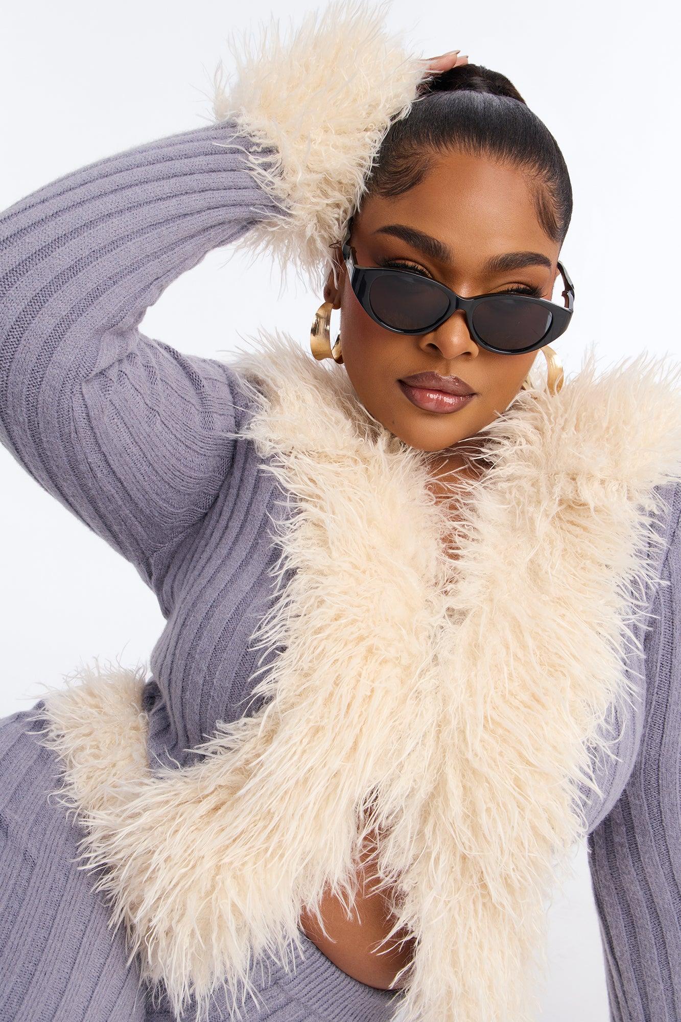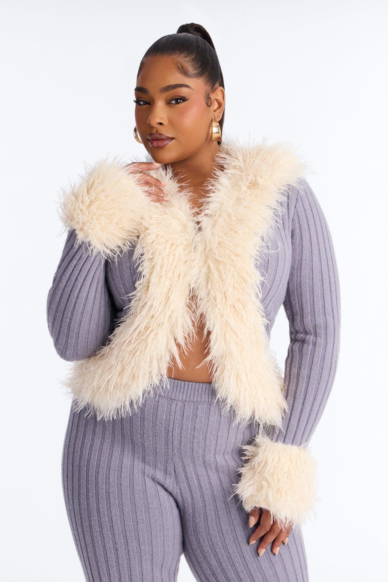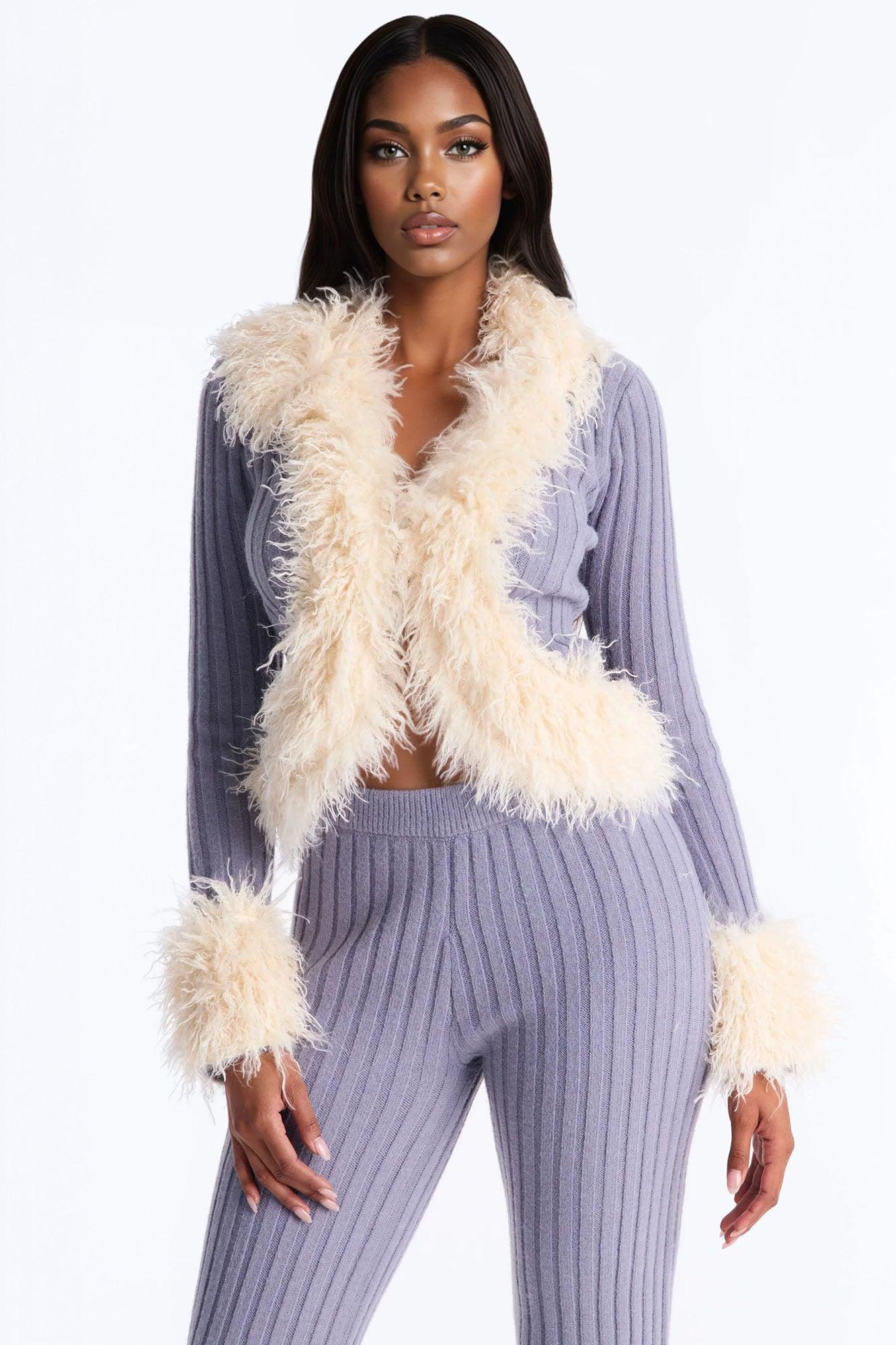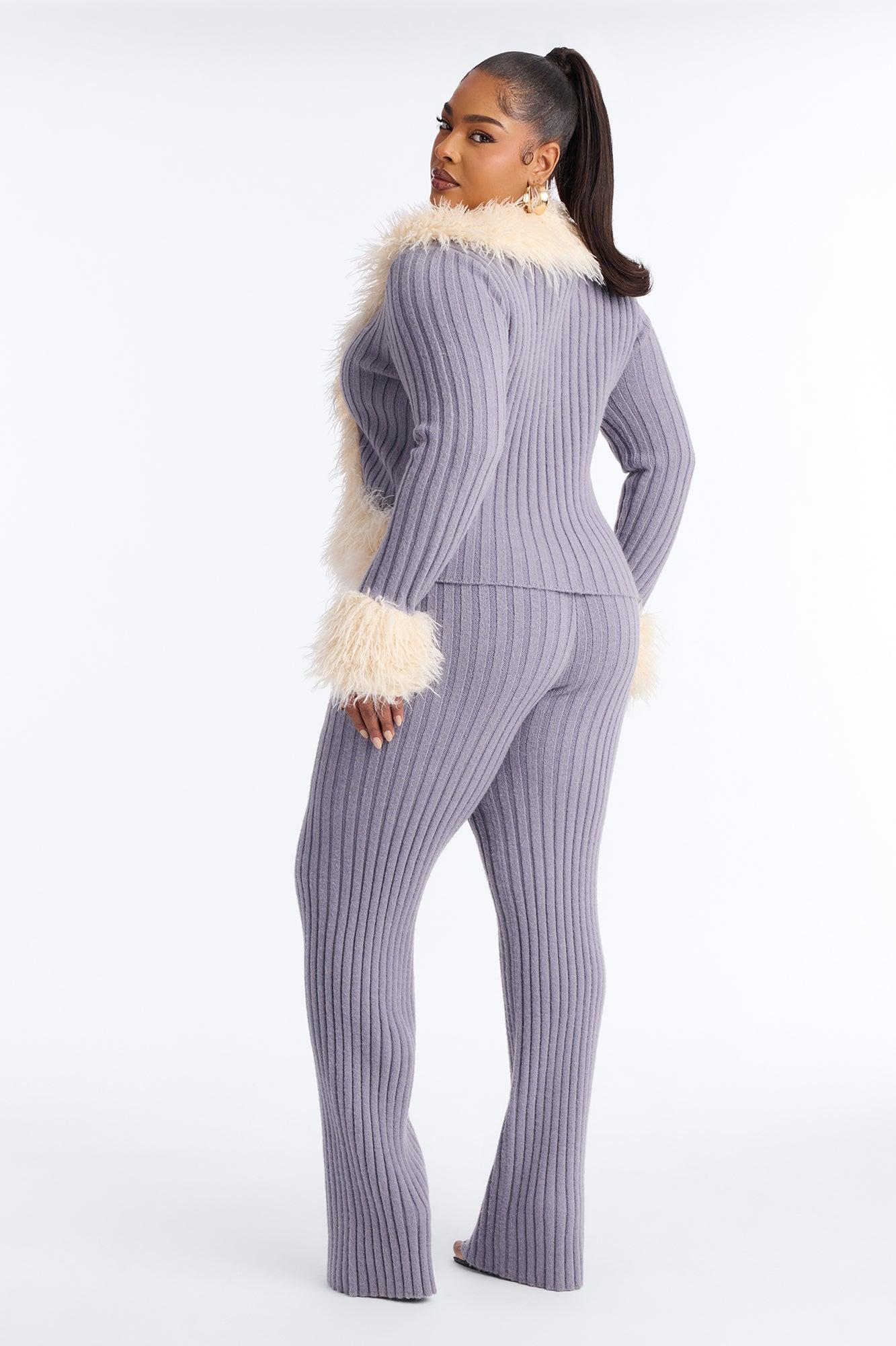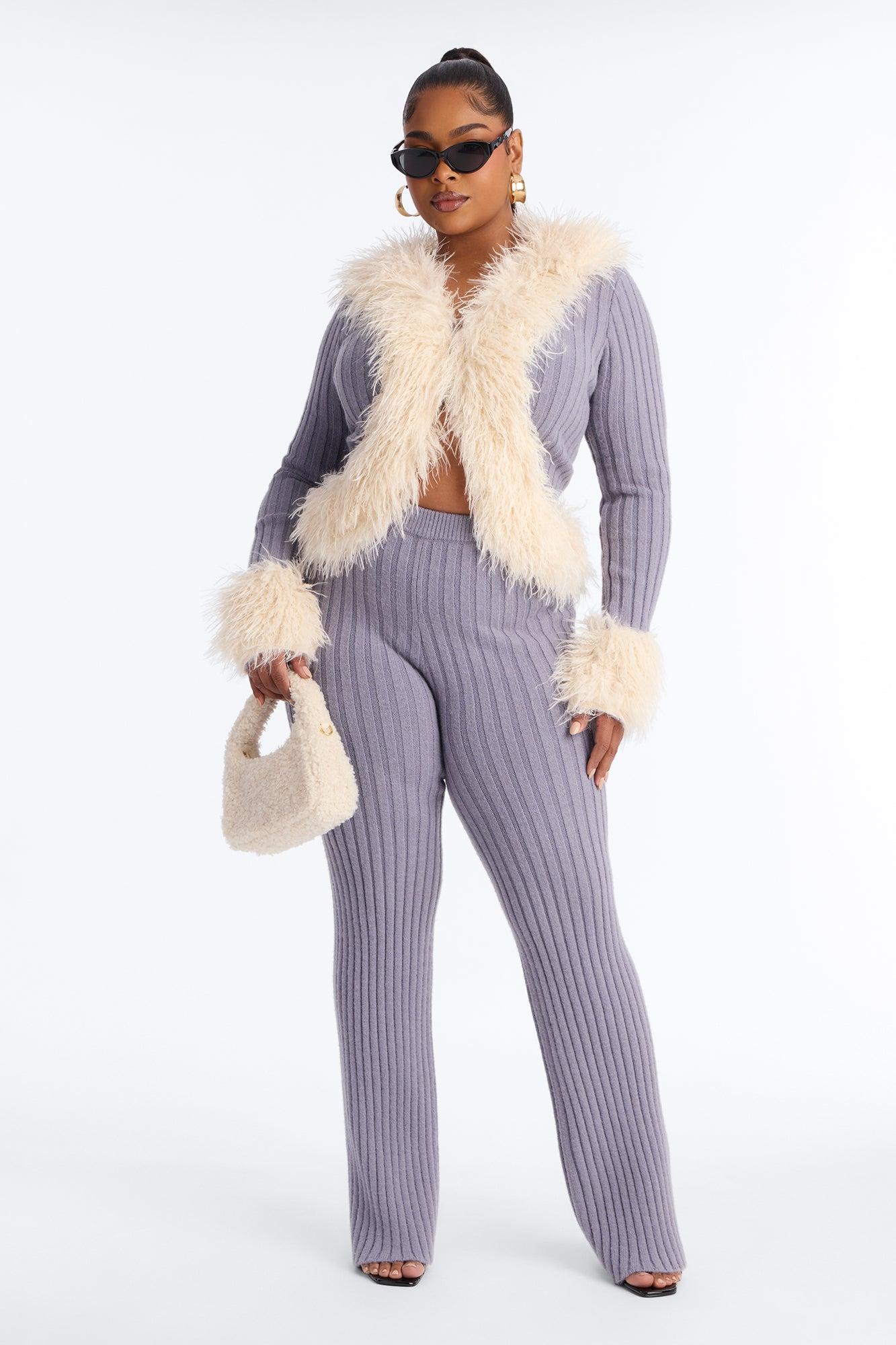 Available In Slate Blue. 2 Piece Ensemble Cardigan And Straight Leg Pant Set Stretch 34.5" Inseam Elastic Waistband Self: 45% Acrylic 30% Polyester 25% Polyamide Top Contrast: 100% Polyester Imported California Proposition 65WARNING: Cancer and Reproductive Harm - www.P65Warnings.ca.gov.