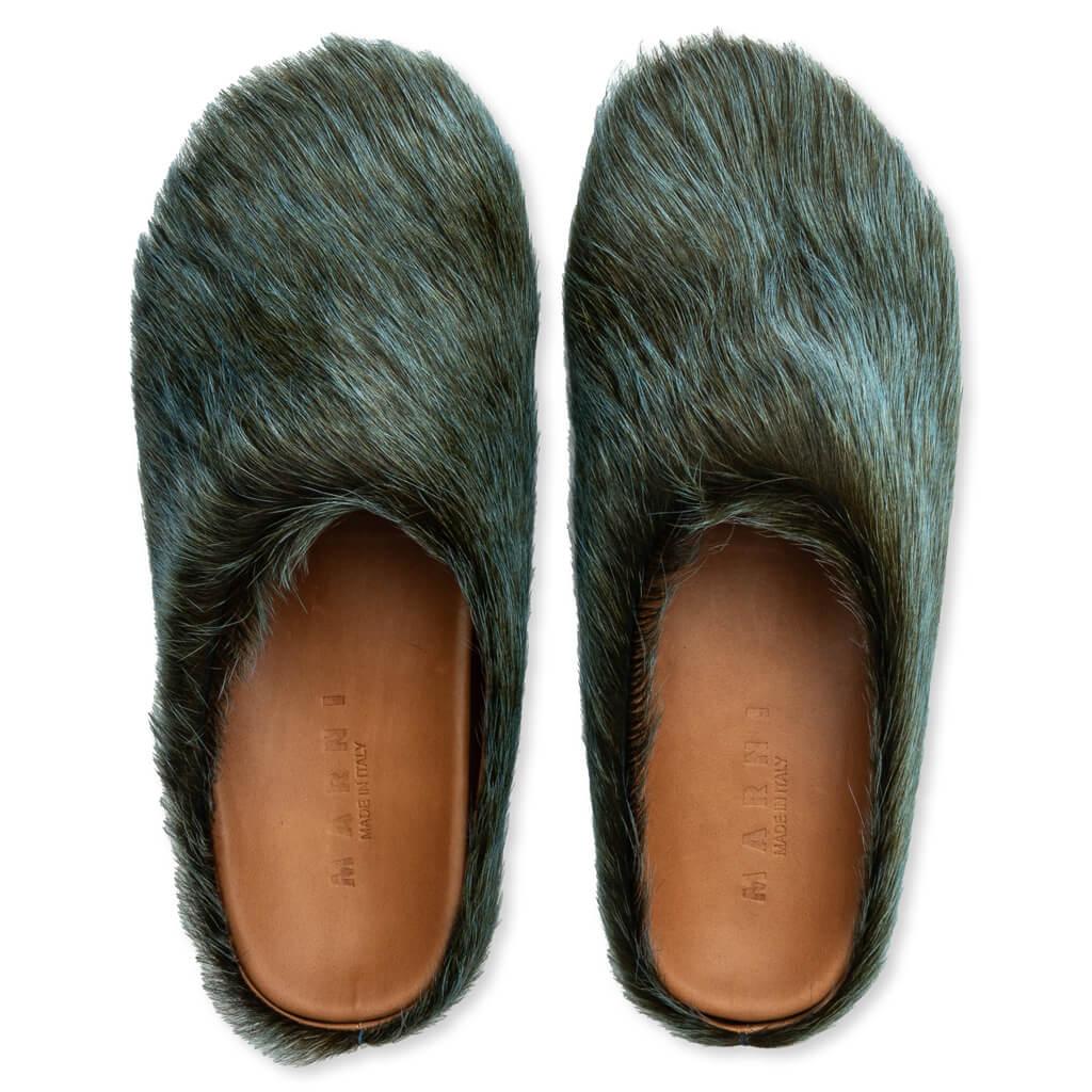 A unique approach to footwear is taken with the Fussbett Sabot from Marni. This slip-on silhouette is crafted from complete calf hair surrounding the exterior, while rubber underneath provides optimal traction and durability. A branded insole completes the aesthetic. 100% calf hair Slip-on Branded insole Rubber outsole Made in Italy All sizes are listed in European Men’s sizing unless stated otherwise Style No: SBMR000600 P8006 00B53