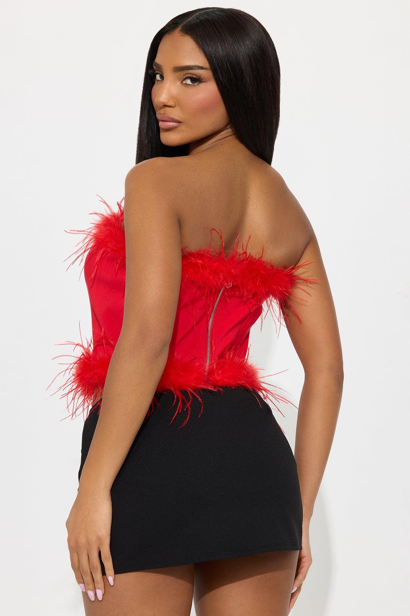 Fuzzy Things Feather Corset Top - Red Female