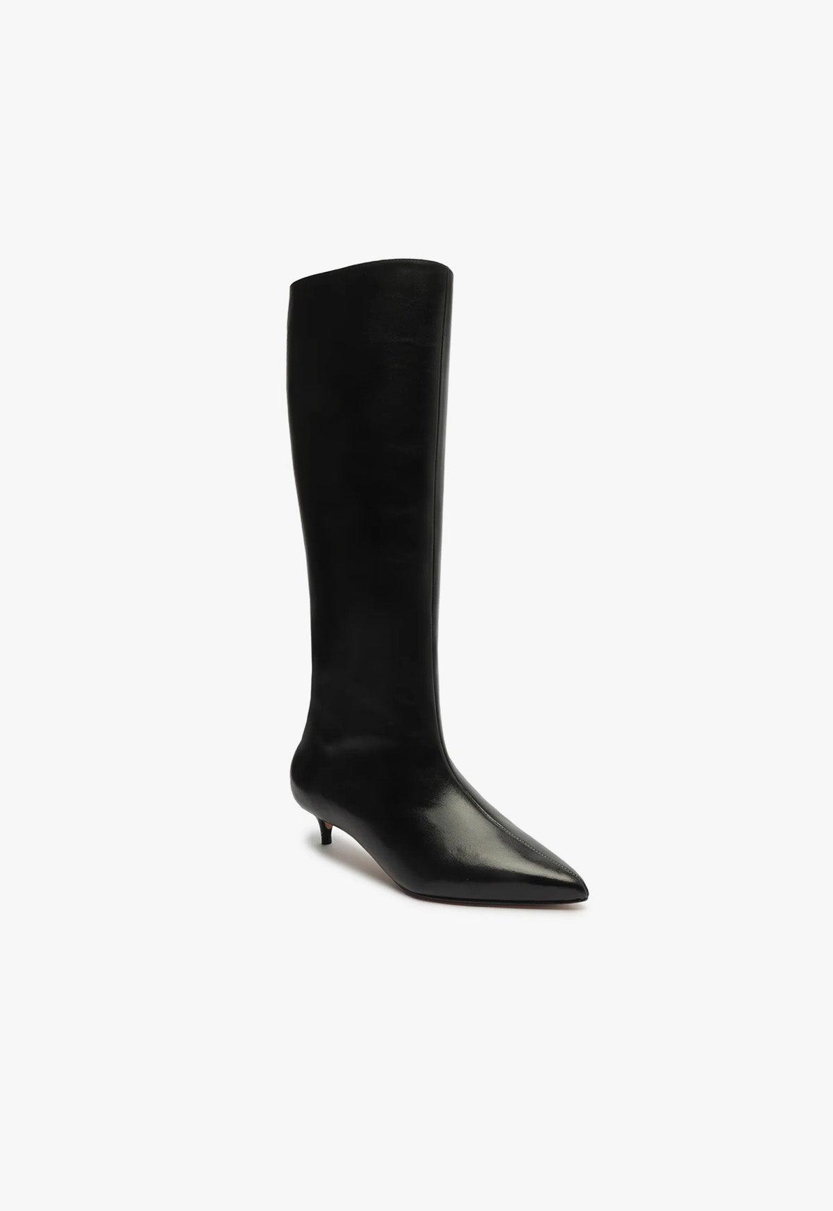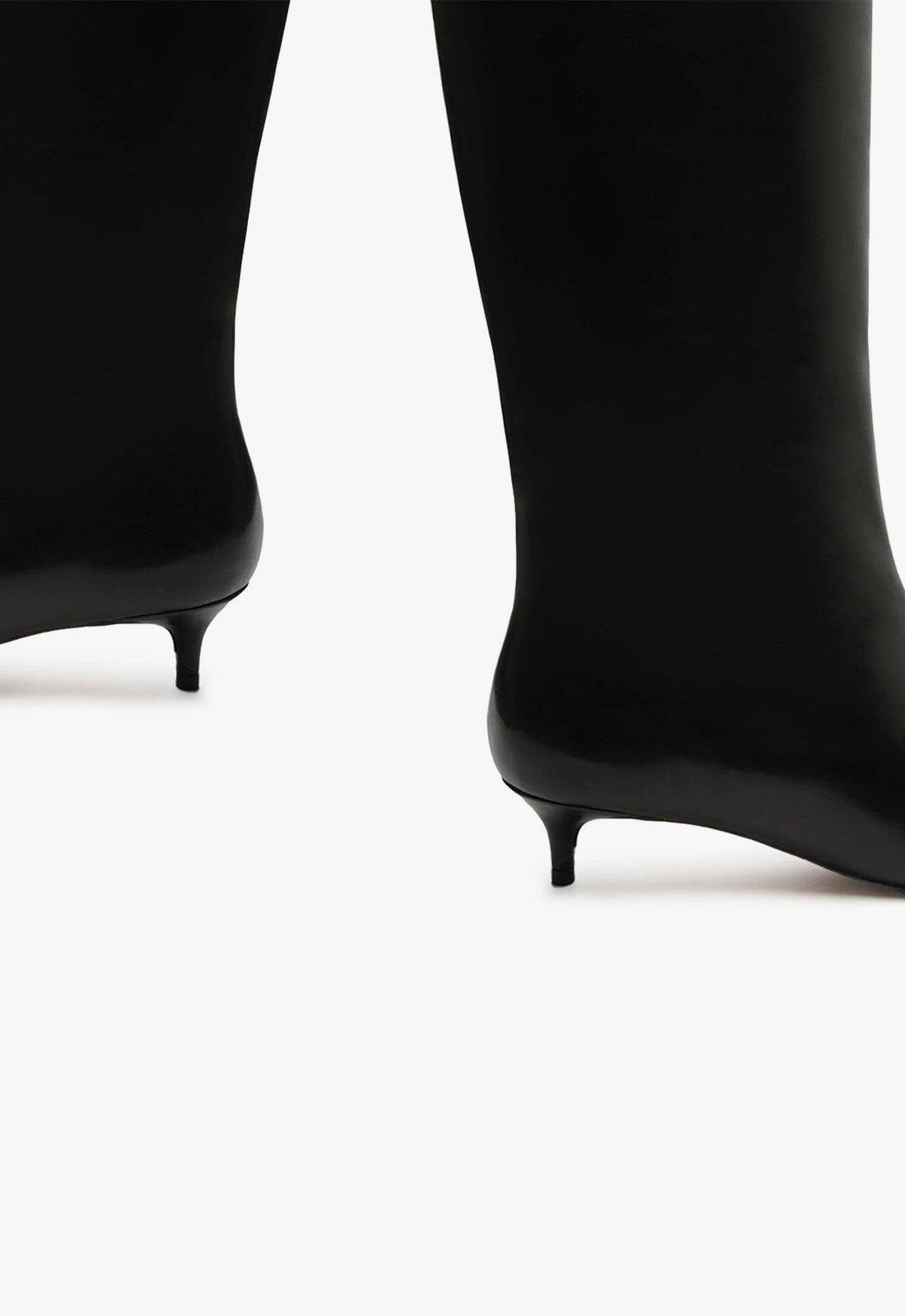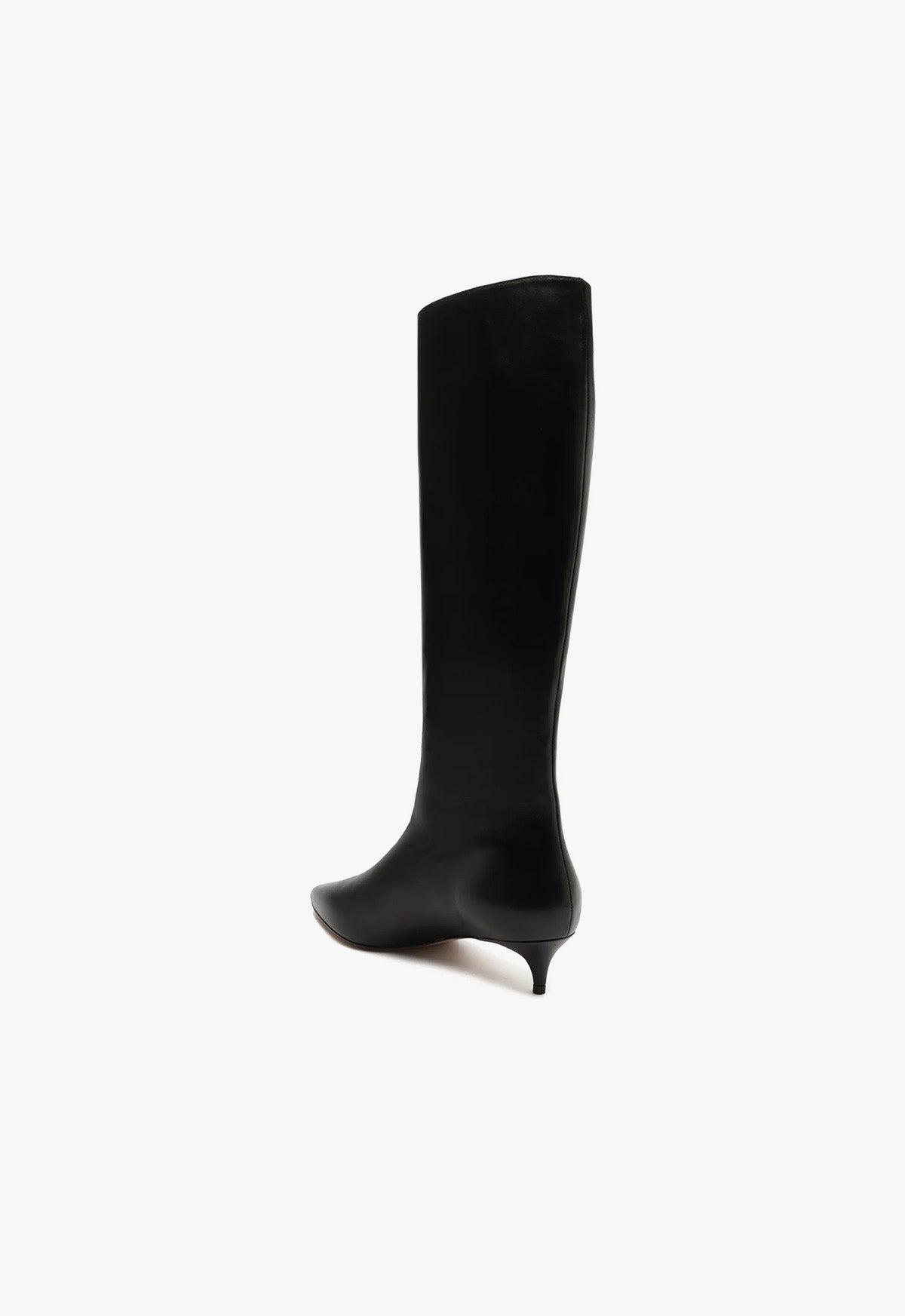 The Gail Boots are taking it up a notch! Featuring an iconic kitten heel and pointed toe, these mid-calf boots will have you turning heads this season when pairing them with a mini skirt. Materials: Cow Leather Upper | Cow Leather OutsoleHeel Type: Low HeelHeel Style: Stiletto HeelToe Style: Pointed ToeClosure Type: Zip ClosureCounter Type: ClosedHeel Height: 1.7 In | 43 mmSKU: S2187600020004