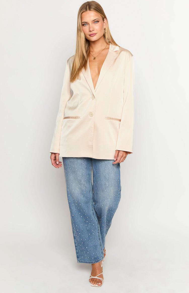Cream Satin Blazer How to style: Look like a total boss in this cream satin blazer! It is the perfect wardrobe staple that you can wear from day to night! Complete the look with a mini dress and nude heels or pair with the matching cream satin pants for a polished, monochromatic look! Features: Two imitation pockets on the front Fully lined Mid weight satin material Non stretch fabric Button up front Vent on lower back