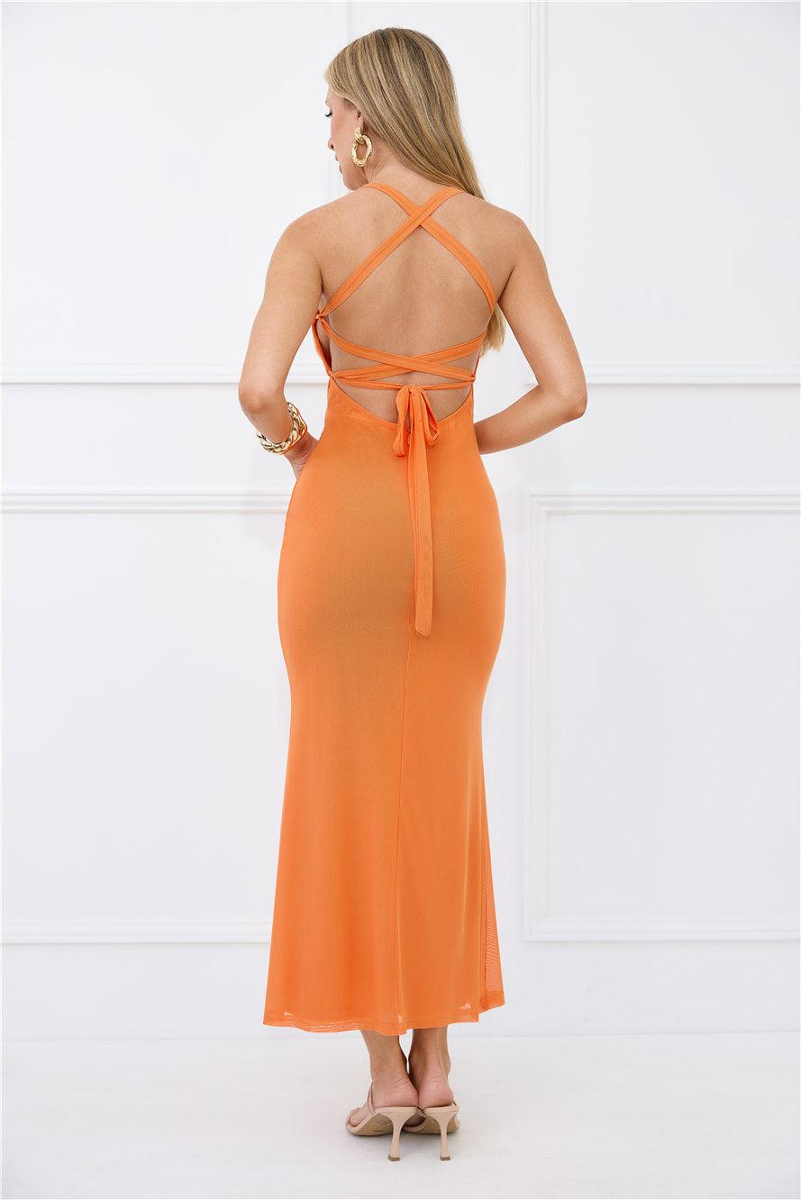 Orange Animal Print Mesh Trim Detail Cut Out Maxi Dress