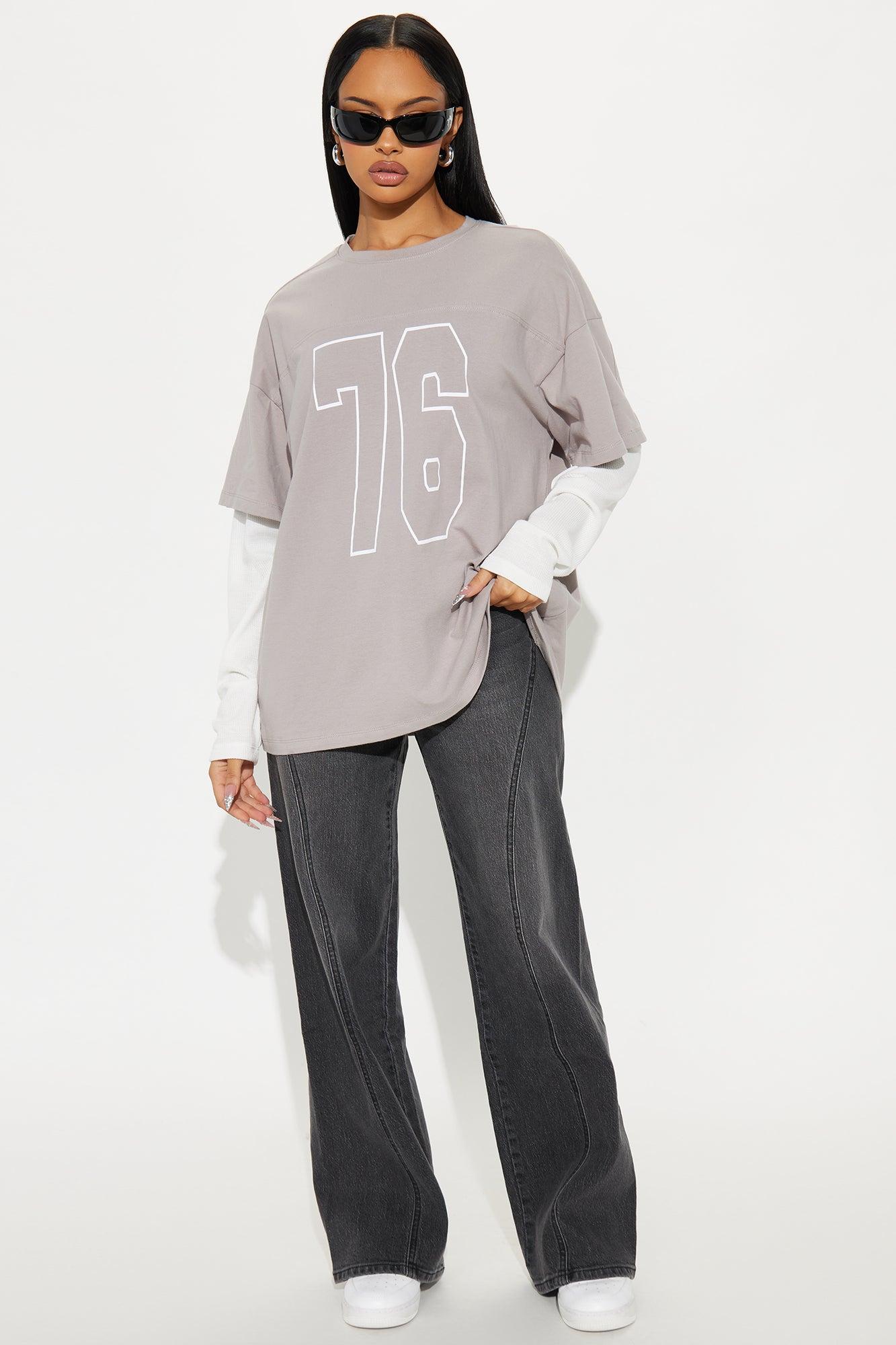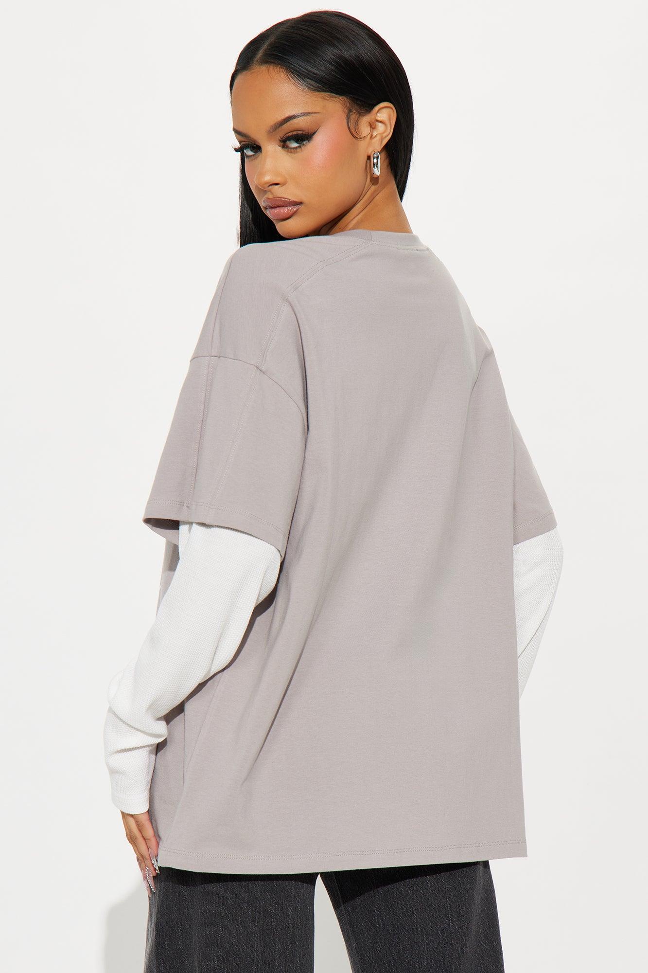 Available In Charcoal. Tshirt Long Sleeve Crew Neck Front Graphic Thermal Sleeves Disclaimer: Due To The Printing Process A Difference In Saturation May Occur. Each Garment Is Unique. Self: 95% Cotton 5% Spandex Contrast: 80% Polyester 16% Rayon 4% Spandex Imported