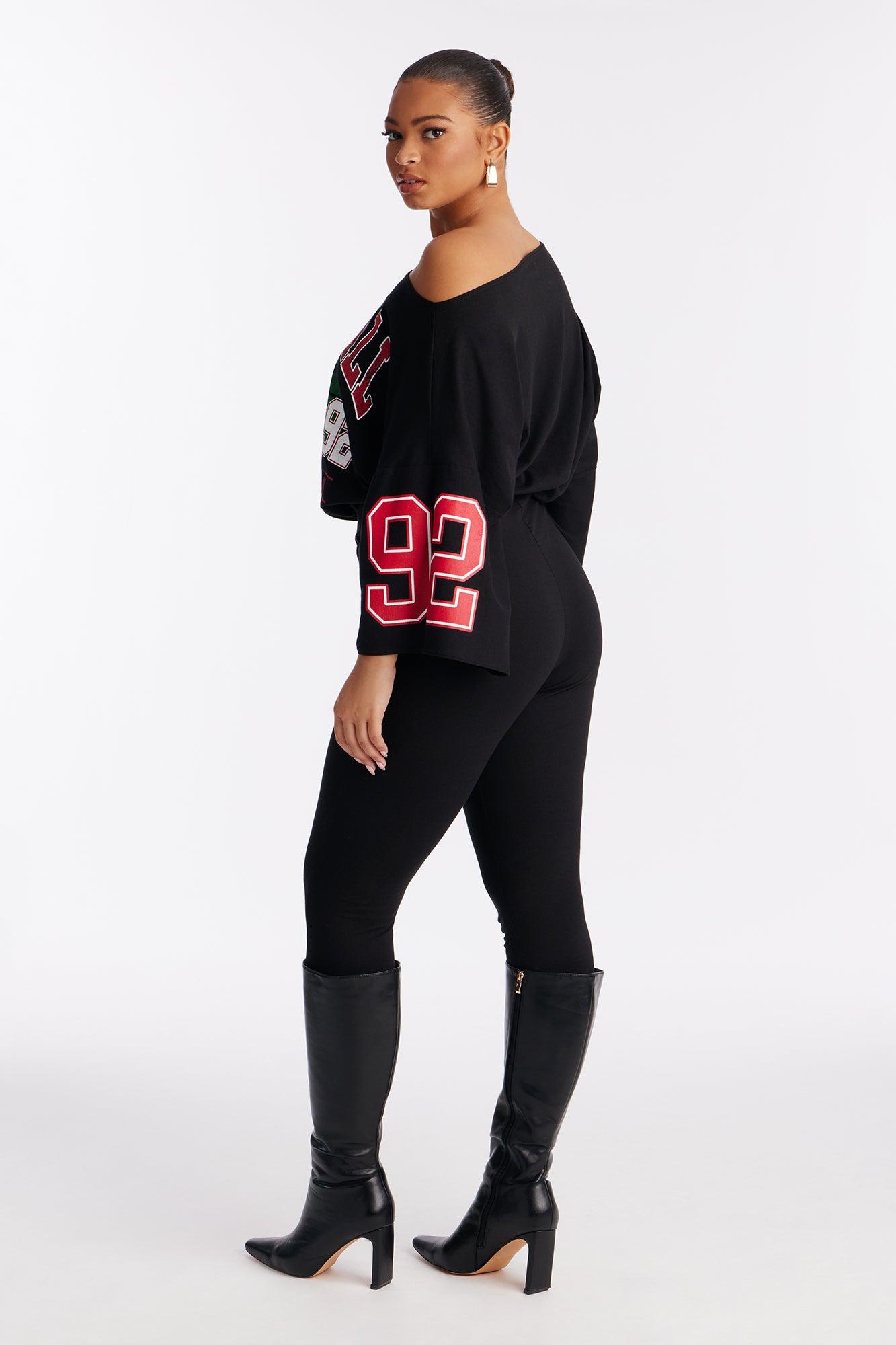 Game Day Off Shoulder Bodysuit Pant Set - Black Female