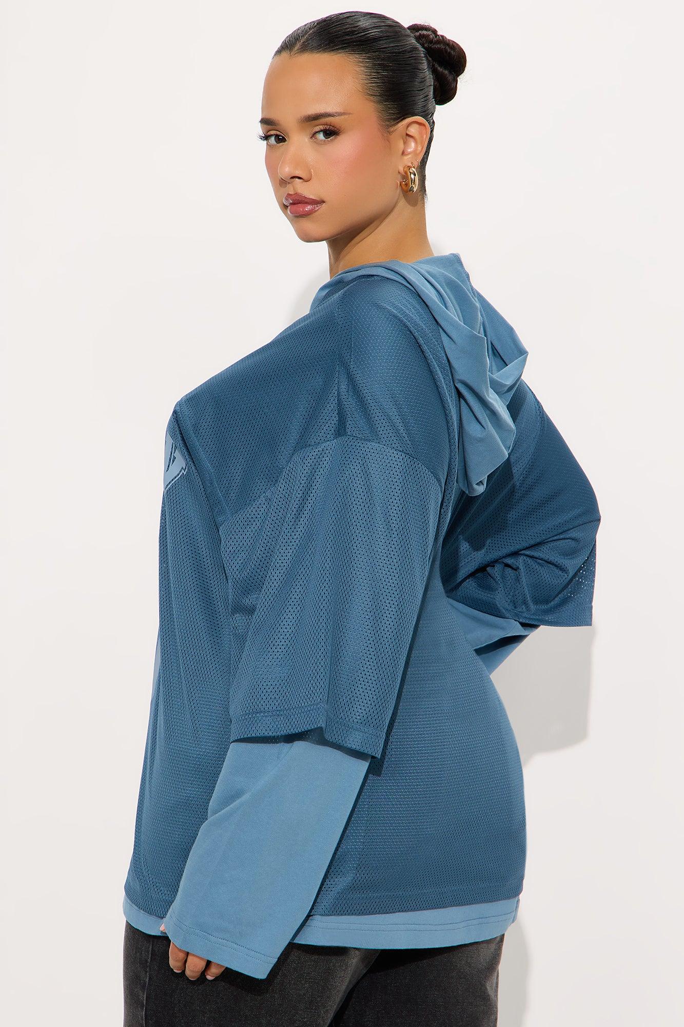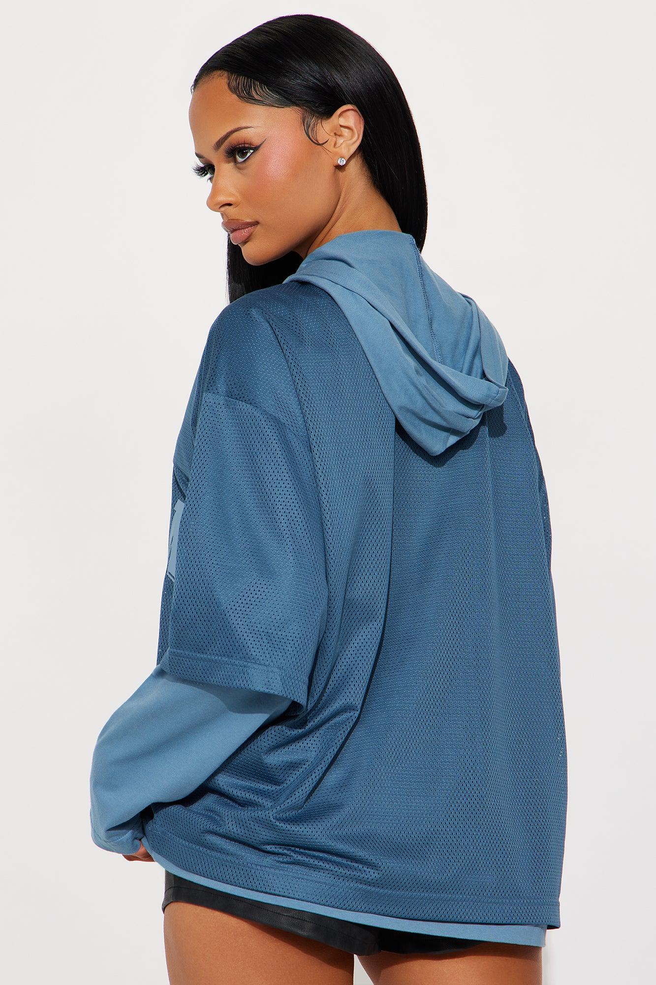 Available In Navy. Hoodie Sweatshirt Long Sleeve Mesh Short Sleeve Front Screen Disclaimer: Due To The Printing Process A Difference In Saturation May Occur. Each Garment Is Unique. Jersey Hoodie: 100% Cotton Mesh Tee: 100% Polyester Imported