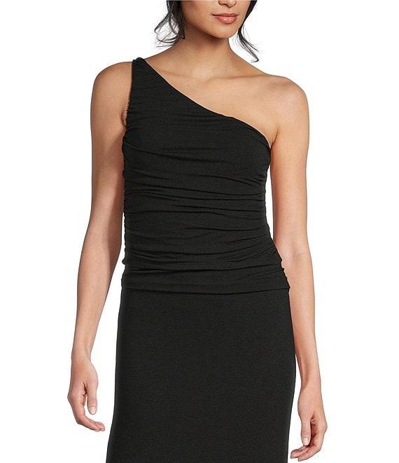 From GB, this tank features: Knit jersey fabric Tank silhouette One-shoulder neckline No sleeves Pullover styling Polyester/rayon/spandex Machine wash/tumble dry Imported.