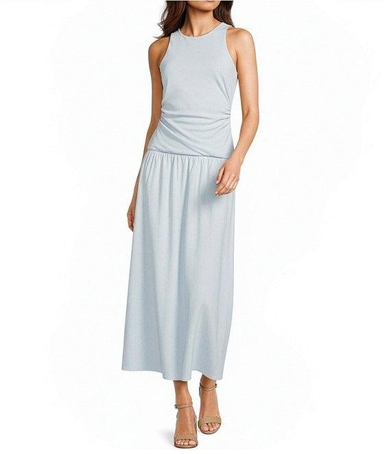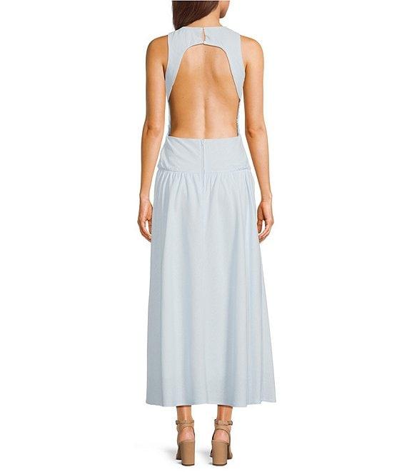 GB Open Back Boat Neck Drop Waist Maxi Dress