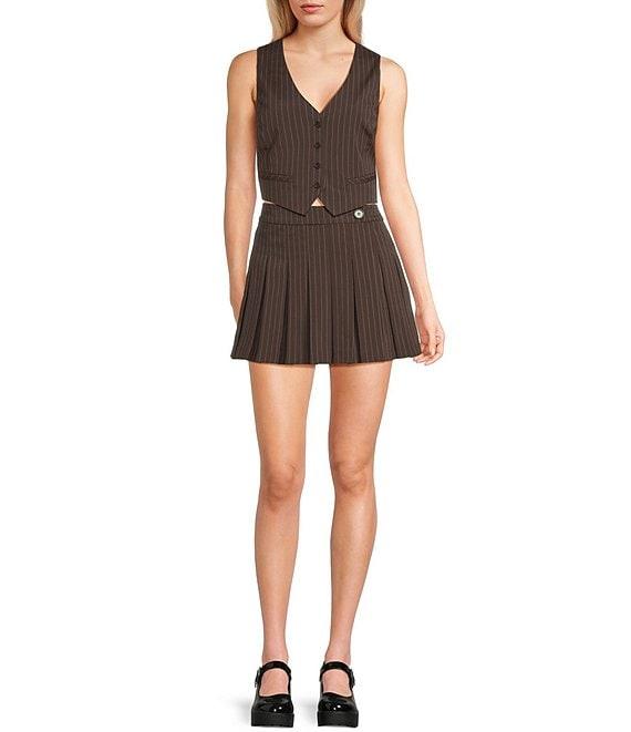 From GB, this vest features: V-neckline Sleeveless Button-front closure Approx. 19" length from shoulder to hem Pinstripe Lined Polyester/rayon/spandex Lining of polyester/spandex Machine wash cold, inside out & gentle cycle/tumble dry low Do not dry clean Imported.