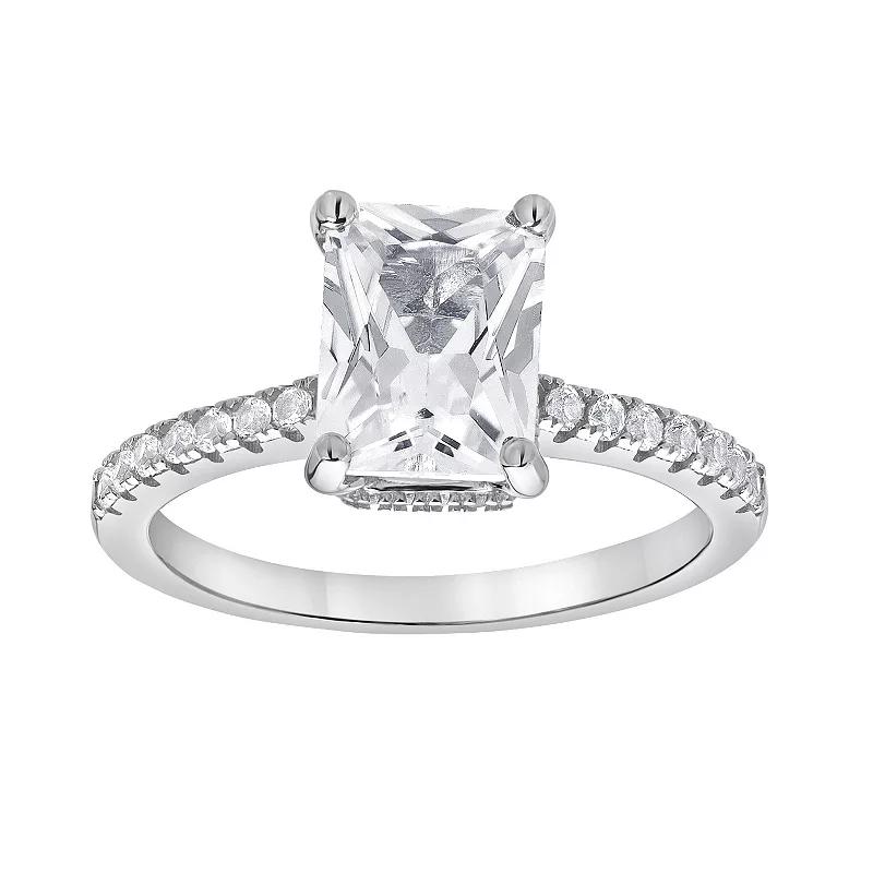Add shimmering style to your ensemble with this Gemstone Brilliance Lab-Created White Sapphire Ring. Click on this JEWELRY & WATCHES GUIDE to learn about fit, styles, materials and more! Add shimmering style to your ensemble with this Gemstone Brilliance Lab-Created White Sapphire Ring. Click on this JEWELRY & WATCHES GUIDE to learn about fit, styles, materials and more! FEATURES Width: 1.90 mm Shank style: straight Band fit: comfort fit Nickel free Metal: sterling silver Plating: rhodium, 14k gold flash, 14k rose gold flash Finish: polished Packaging: boxedSTONE DETAILS Stone type: lab-created white sapphire Center stone size: 8.86 mm x 6.18 mm Shape: round Setting: prong Gemstones may have been treated to enhance their appearance. Special care may be required. Please visit our Gemstone Treatment & Special Care Guide for more information. Size: 7. Color: Silver Tone. Gender: female. Age Group: adult.