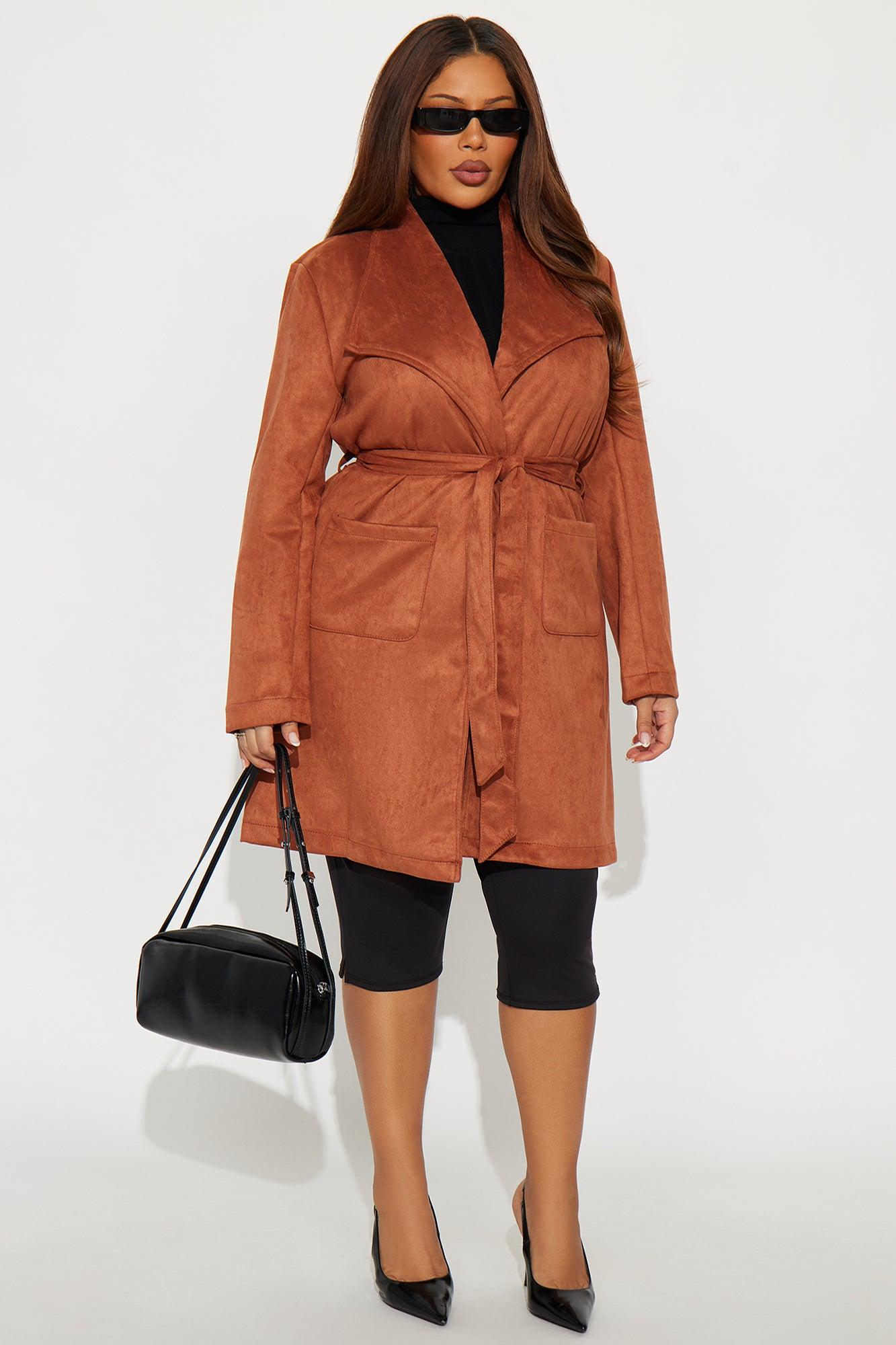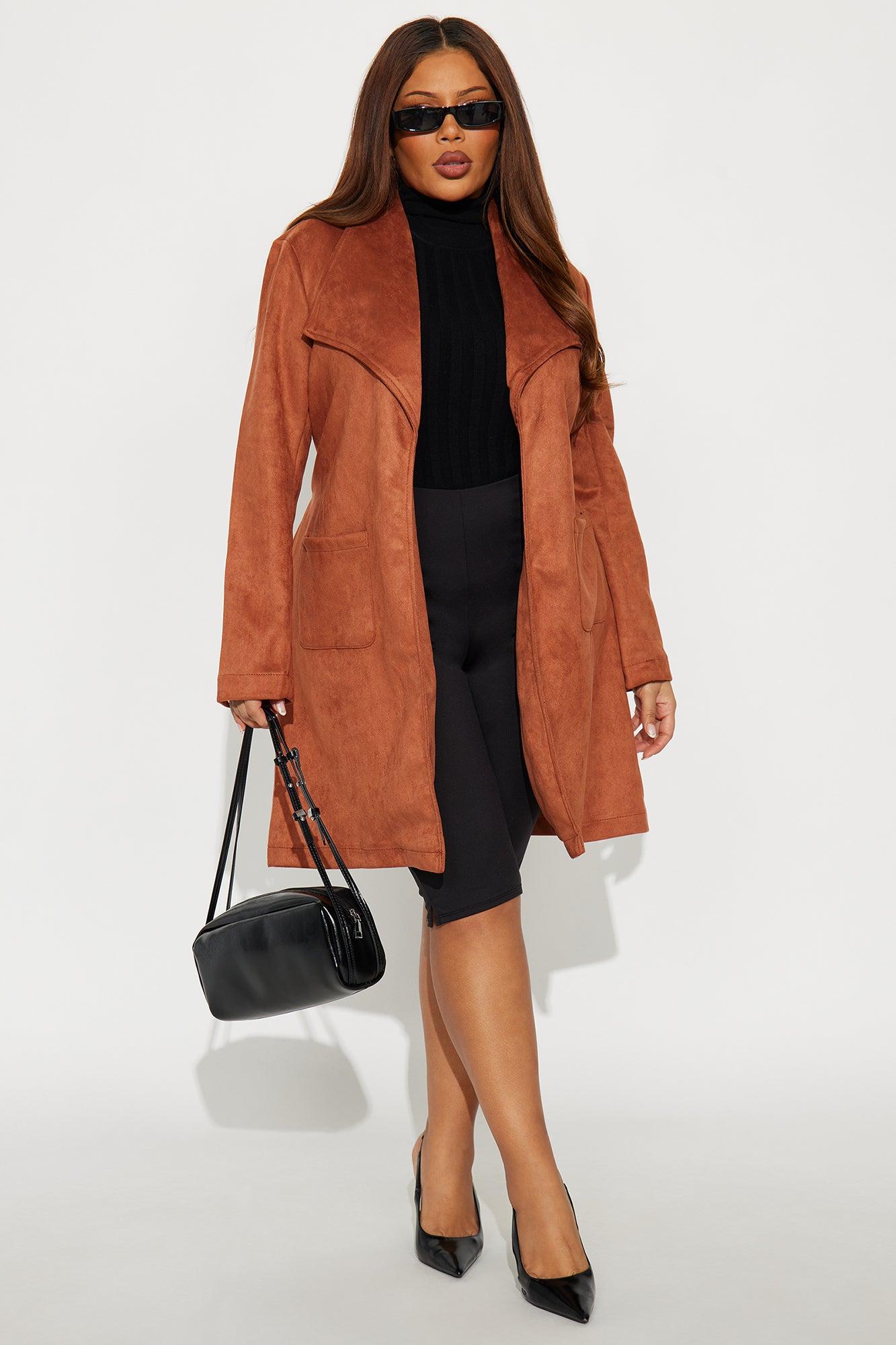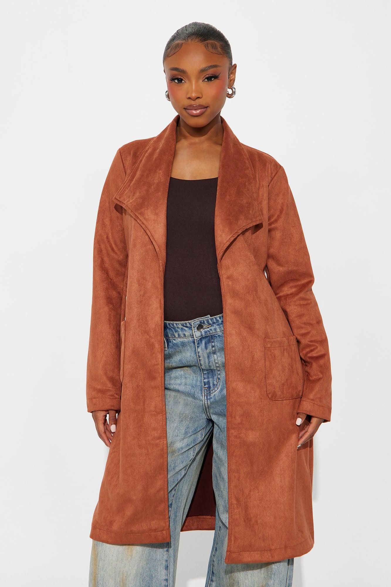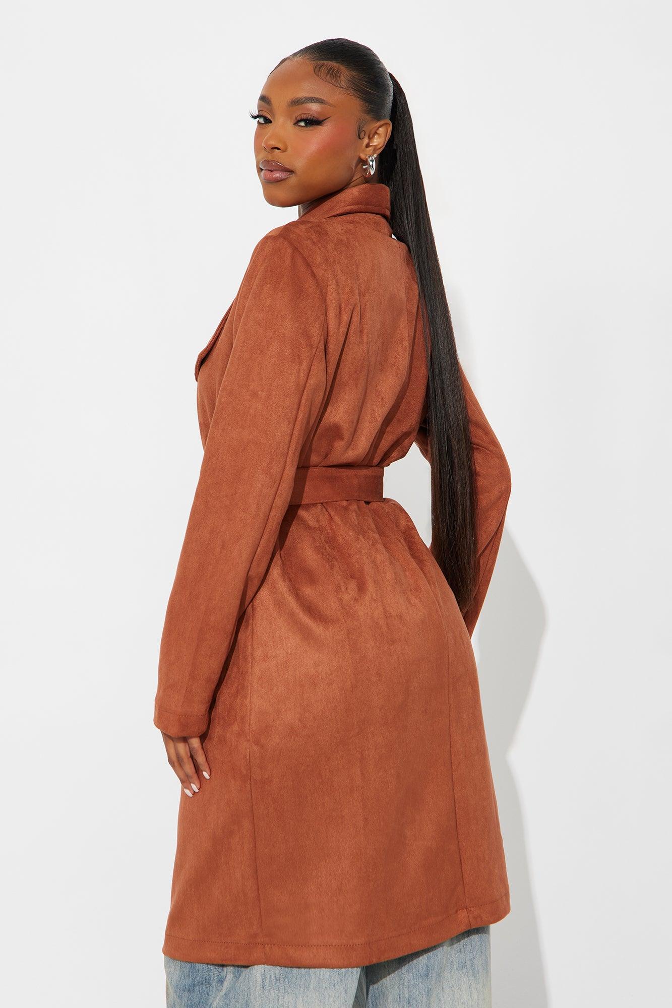 Gia Faux Suede Trench Coat - Cognac Female